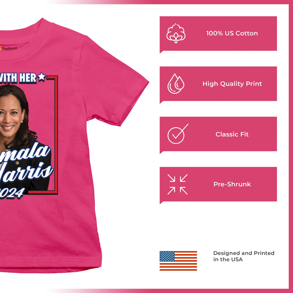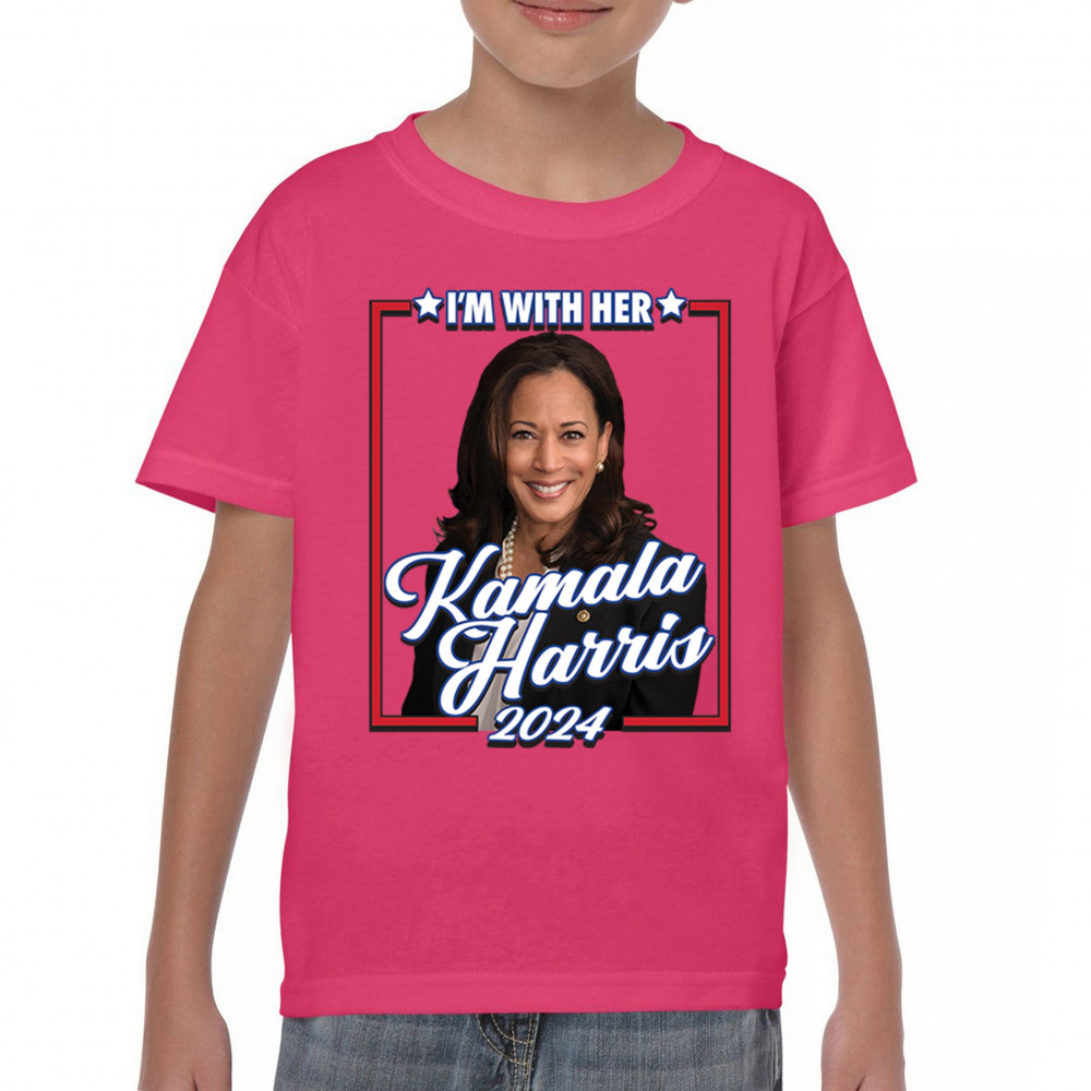 Stand with Kamala Harris in her 2024 presidential campaign with this vibrant design. Highlighting her commitment to progressive causes, this design is perfect for supporters of LGBTQ+ rights, women's rights, and social justice. Featuring the iconic "I'm With Her" slogan, it's a bold statement for anyone who believes in a brighter future. Wear it to rallies, events, or any day to show your support for Kamala Harris and her vision for America. A great addition to any supporter’s collection!