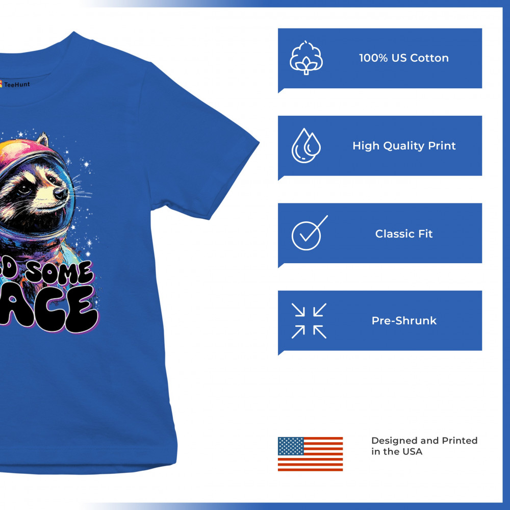 Funny raccoon astronaut shirt for galaxy geeks and wildlife lovers. Quirky animal astronaut design with cosmic sci-fi humor.