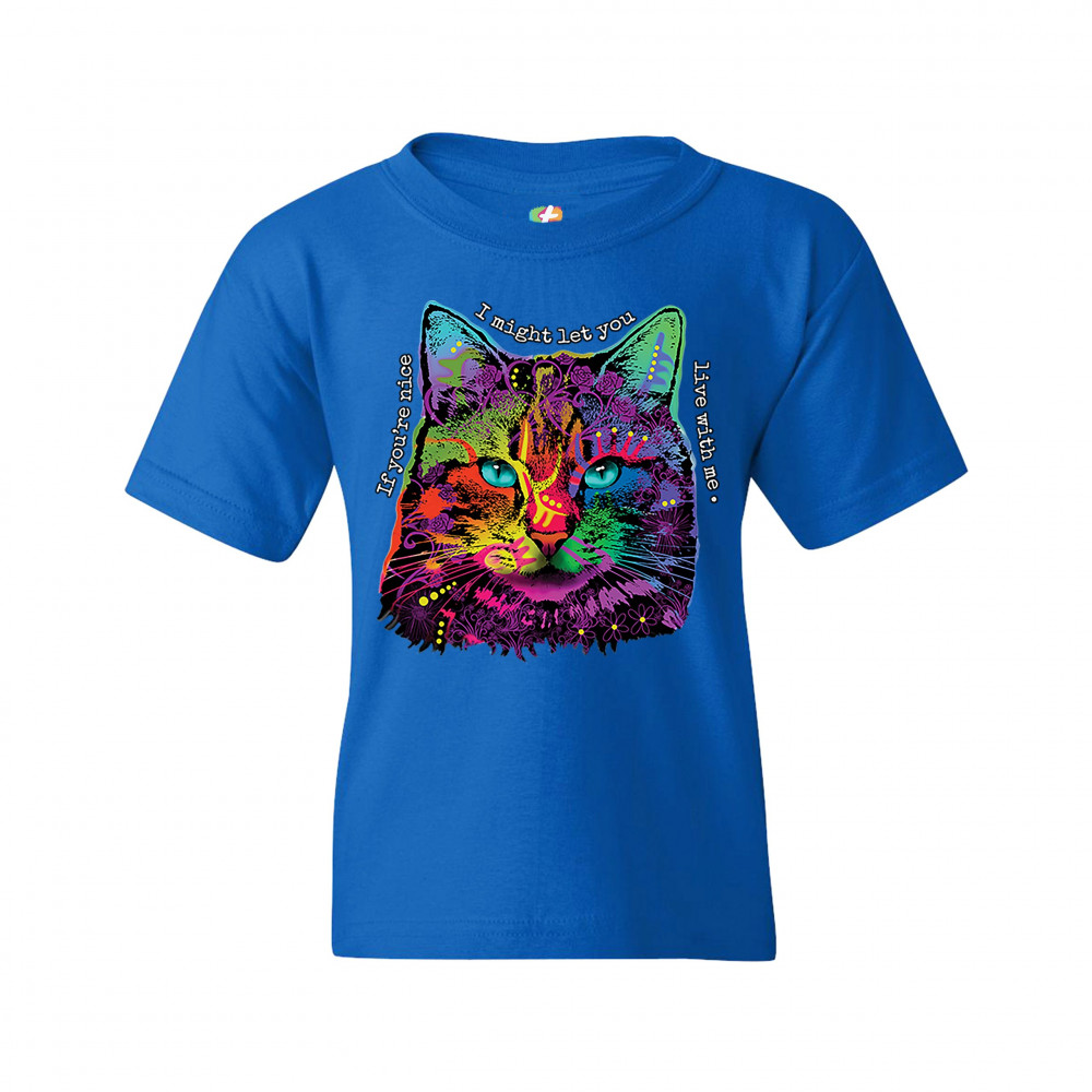 IF YOU'RE NICE I MIGHT LET YOU LIVE WITH ME youth t-shirt andy maxx cat kids royal blue
