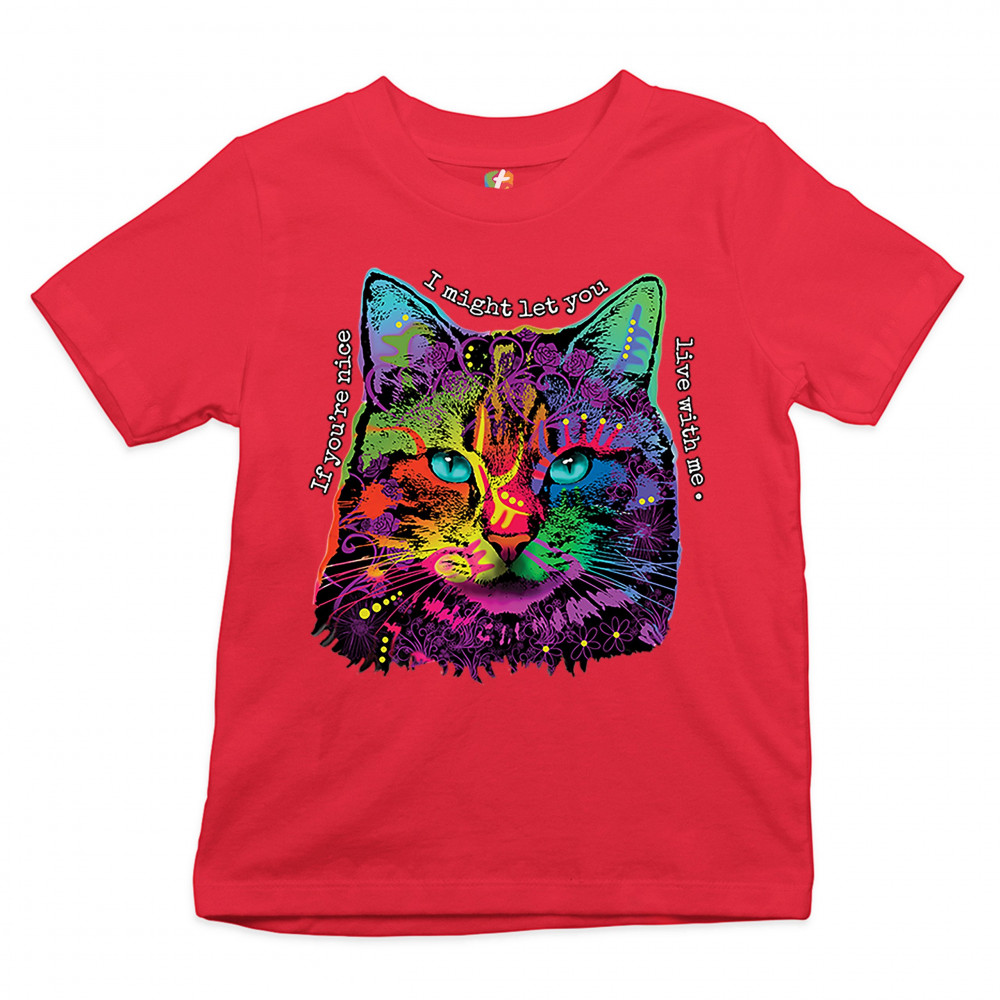 IF YOU'RE NICE I MIGHT LET YOU LIVE WITH ME youth t-shirt andy maxx cat kids red