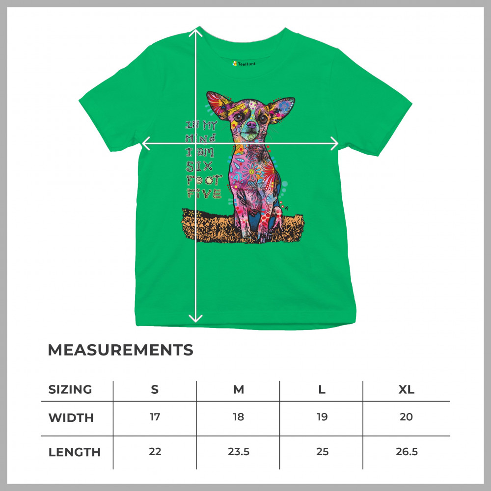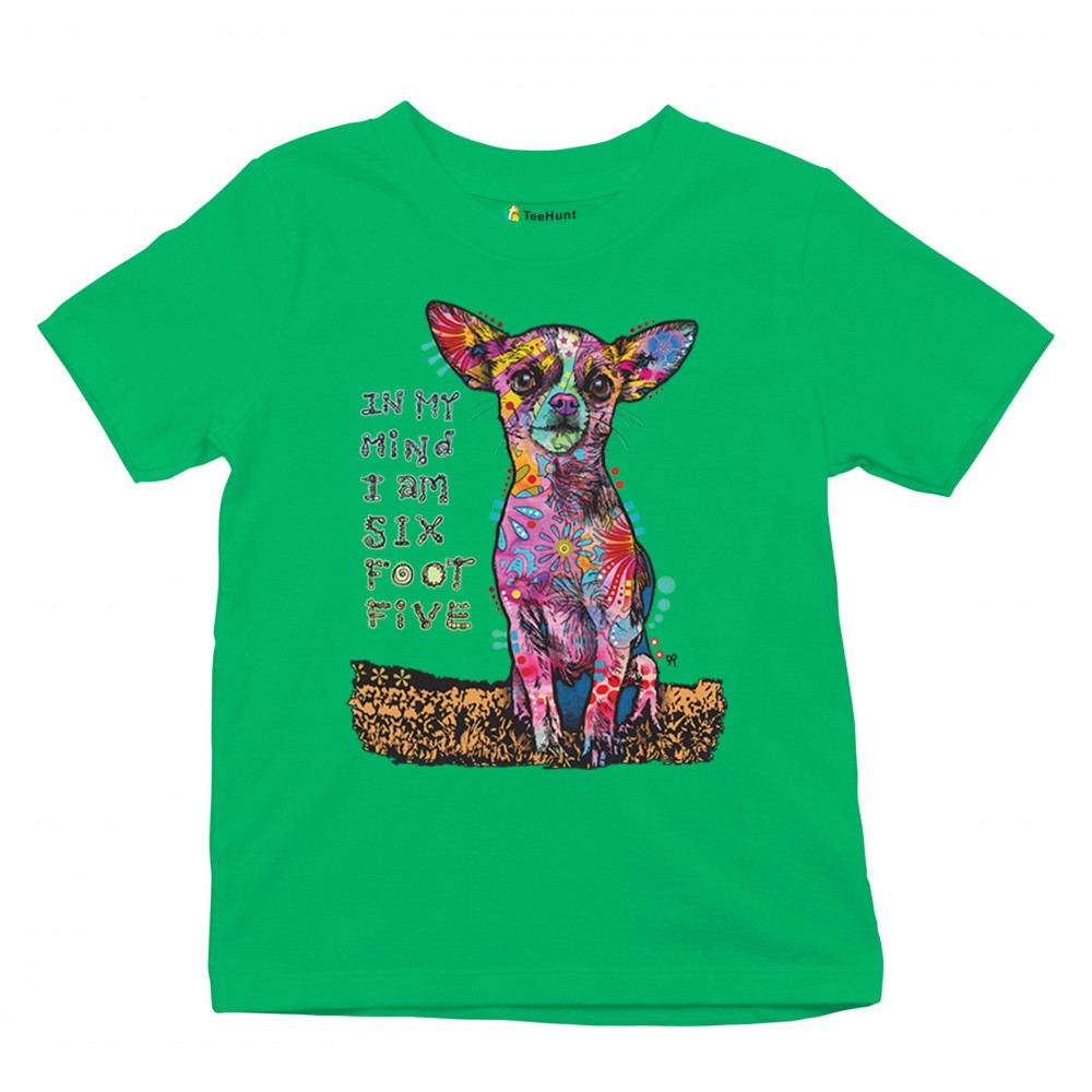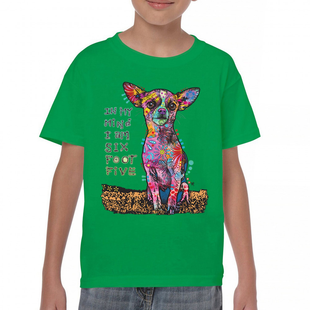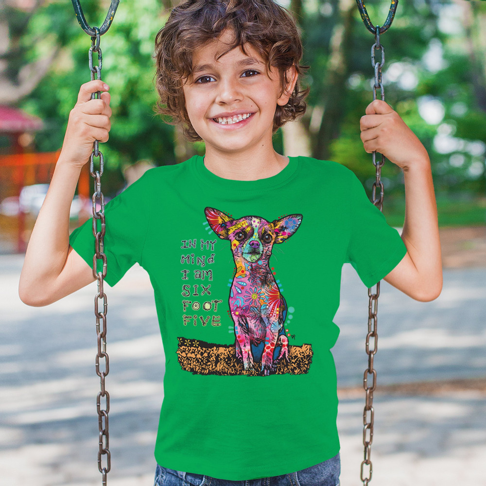 IN MY MIND I'M SIX FOOT FIVE youth t-shirt dean russo funny chihuahua kids green