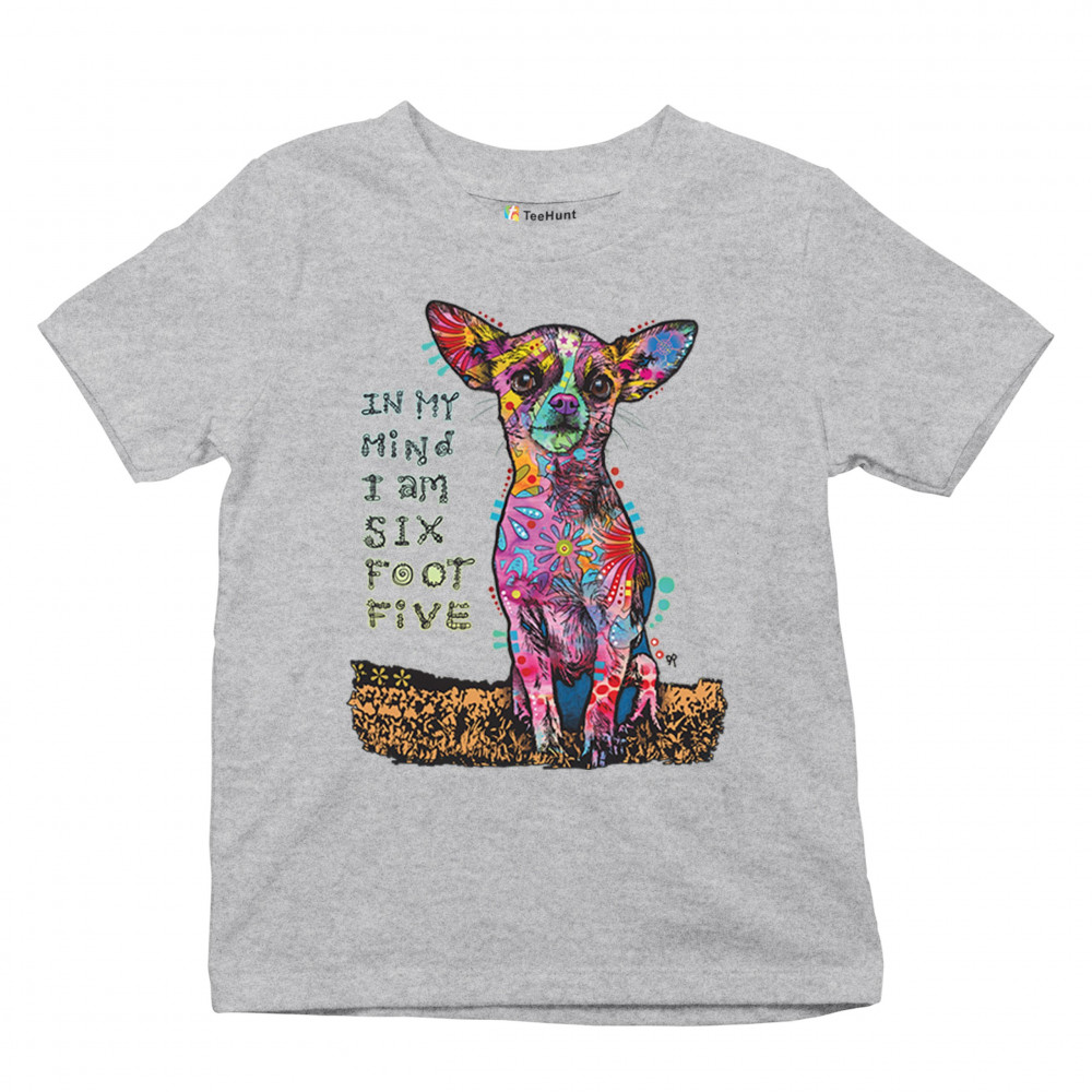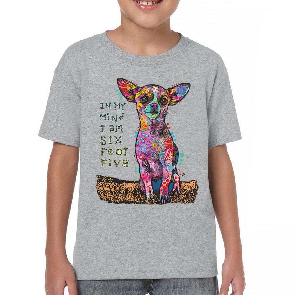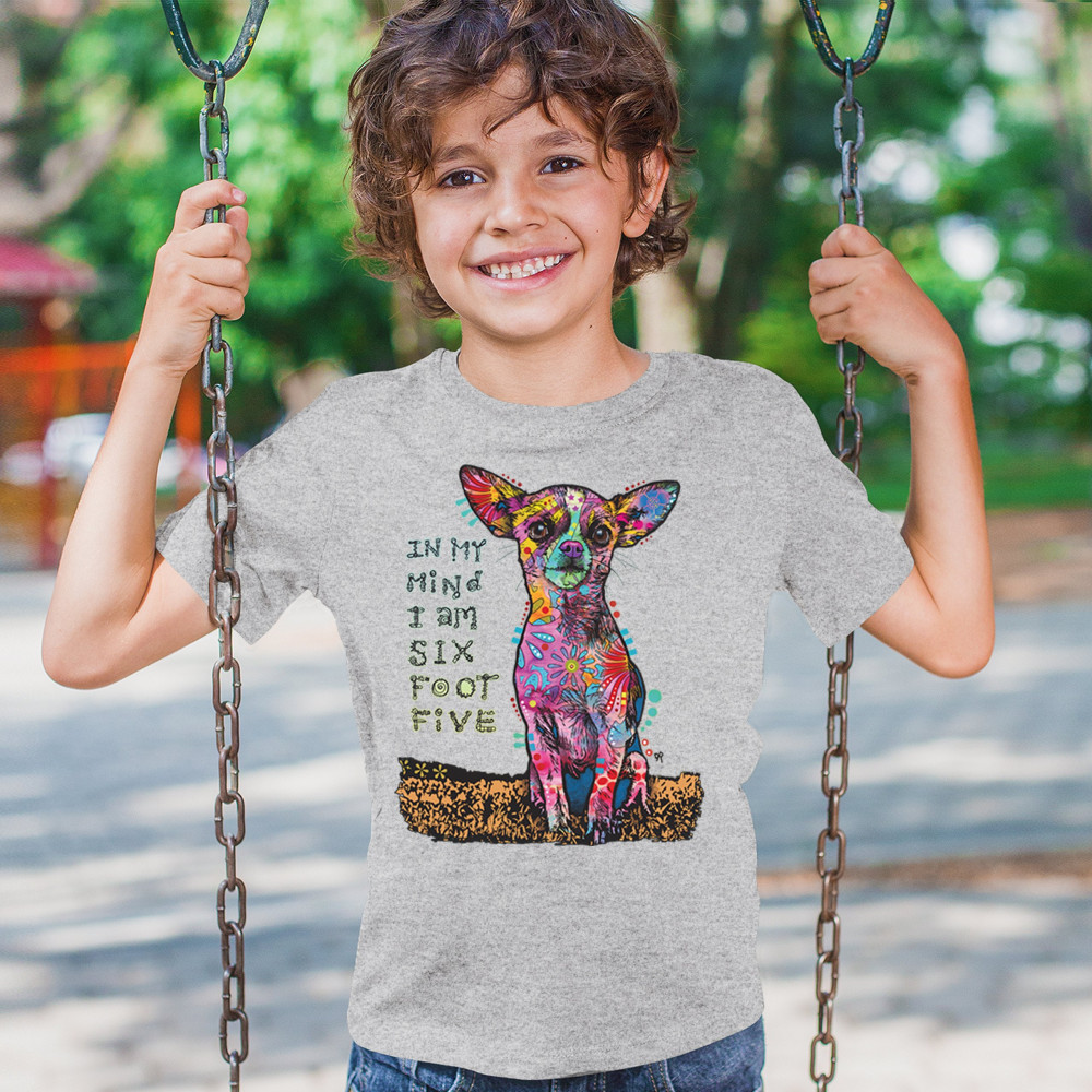 IN MY MIND I'M SIX FOOT FIVE youth t-shirt dean russo funny chihuahua kids gray
