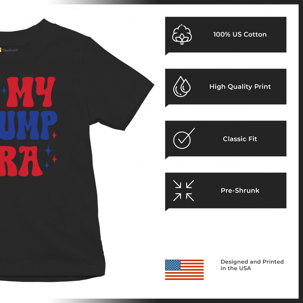 Celebrate the bold spirit of the Trump era with this eye-catching design. Show your pride in the America First movement, Republican values, and unwavering support for Donald J. Trump. Whether for rallies, casual wear, or as a gift for fellow patriots, this design encapsulates the essence of conservative resilience, the fight for freedom, and the people's voice.