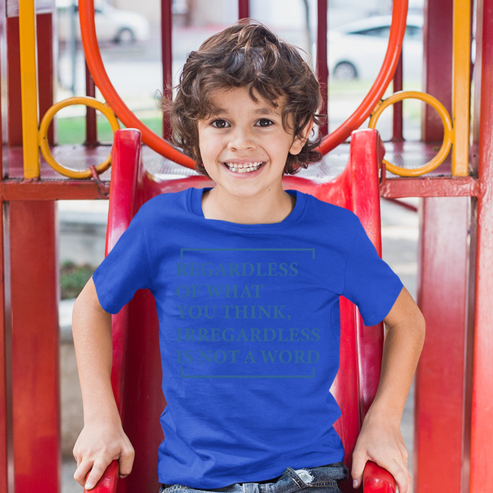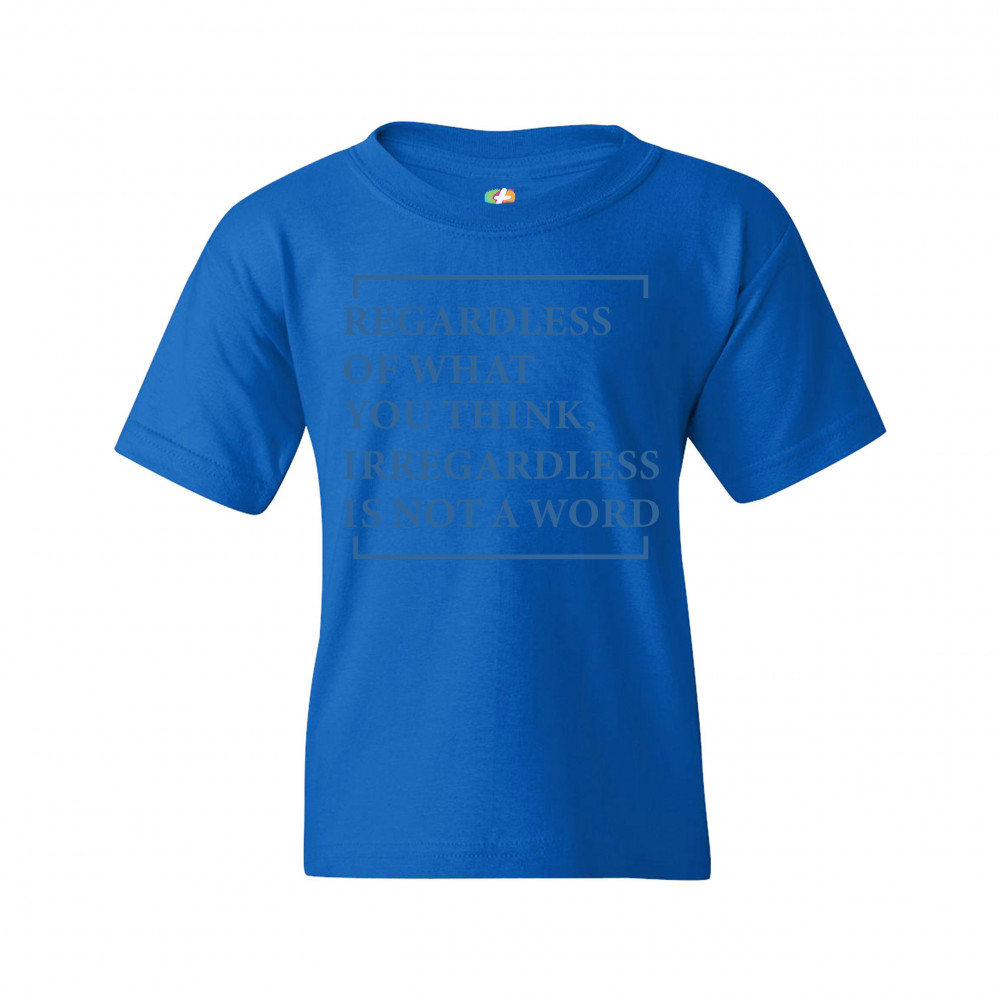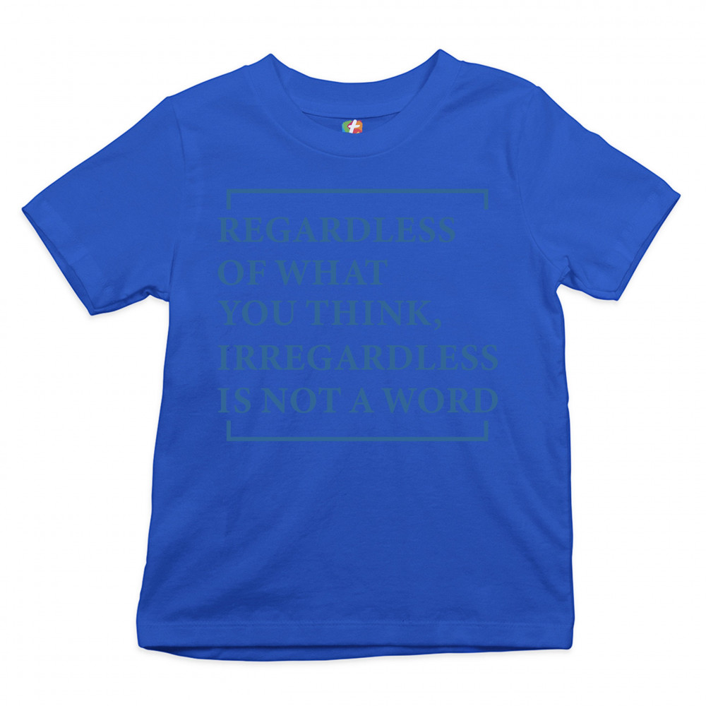 IRREGARDLESS IS NOT A WORD youth t-shirt funny english grammar kids royal blue