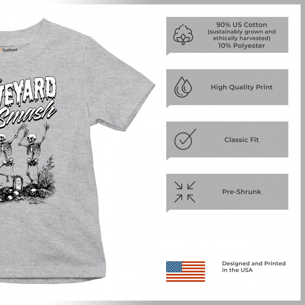 Add a touch of spooky fun to your Halloween attire with this "Graveyard Smash" design, showcasing skeletons dancing under the moonlight in a graveyard. Ideal for anyone who loves Halloween, this graphic tee is perfect for parties, haunted houses, or casual trick-or-treating. Made from high-quality materials, it offers both comfort and style, ensuring you look great while embracing the festive spirit. Available in multiple sizes, this shirt is a must-have for your Halloween collection.