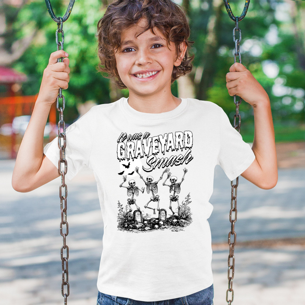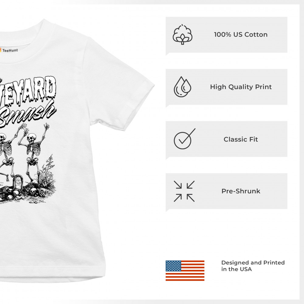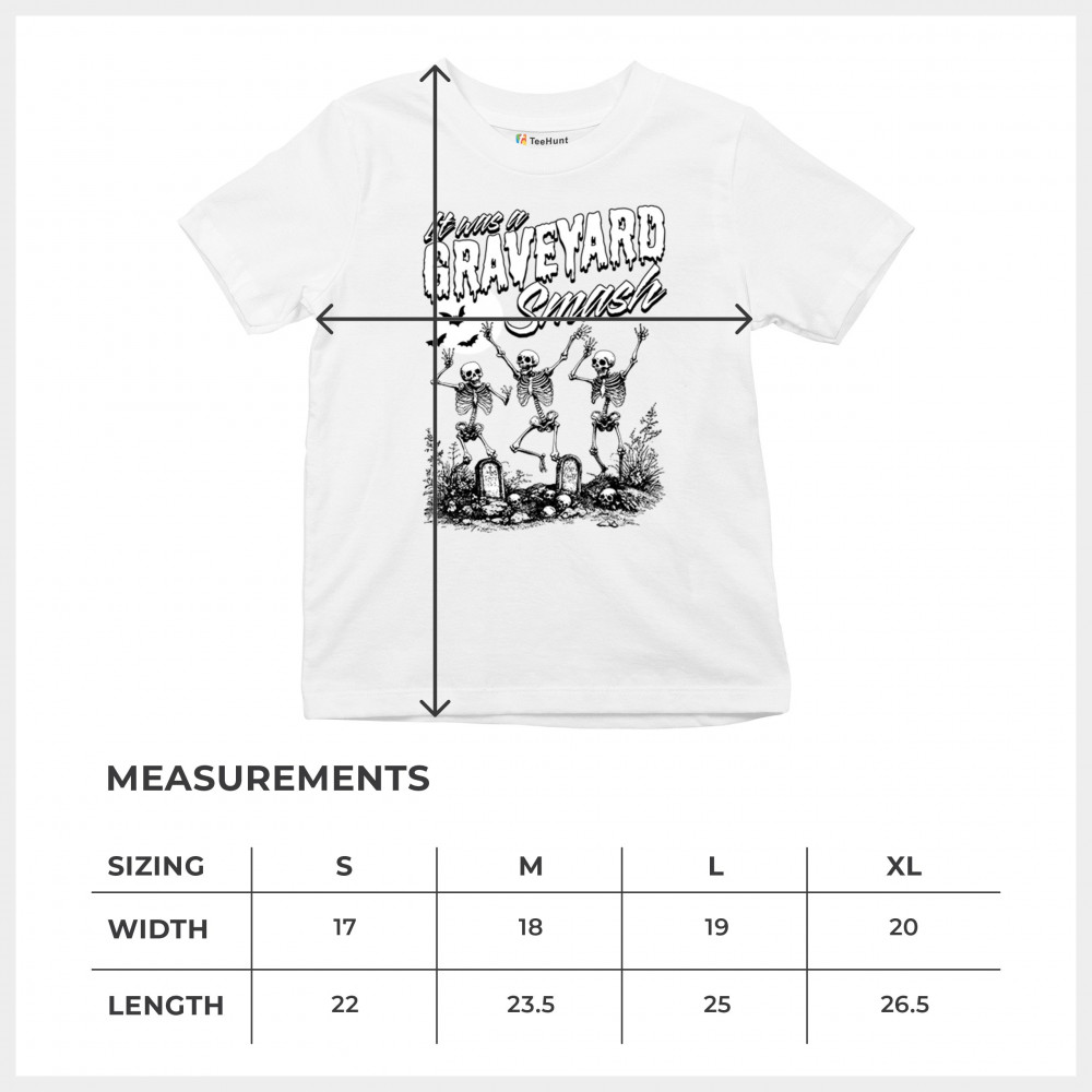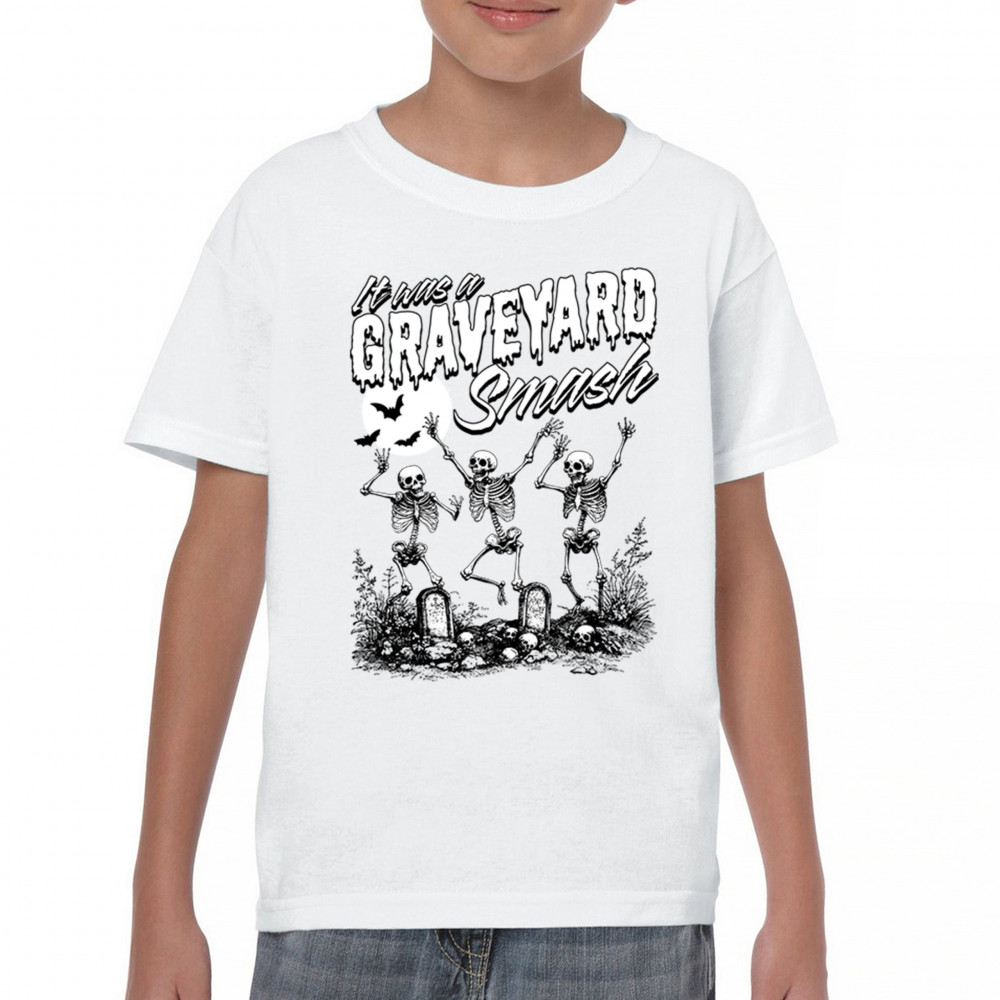 Add a touch of spooky fun to your Halloween attire with this "Graveyard Smash" design, showcasing skeletons dancing under the moonlight in a graveyard. Ideal for anyone who loves Halloween, this graphic tee is perfect for parties, haunted houses, or casual trick-or-treating. Made from high-quality materials, it offers both comfort and style, ensuring you look great while embracing the festive spirit. Available in multiple sizes, this shirt is a must-have for your Halloween collection.