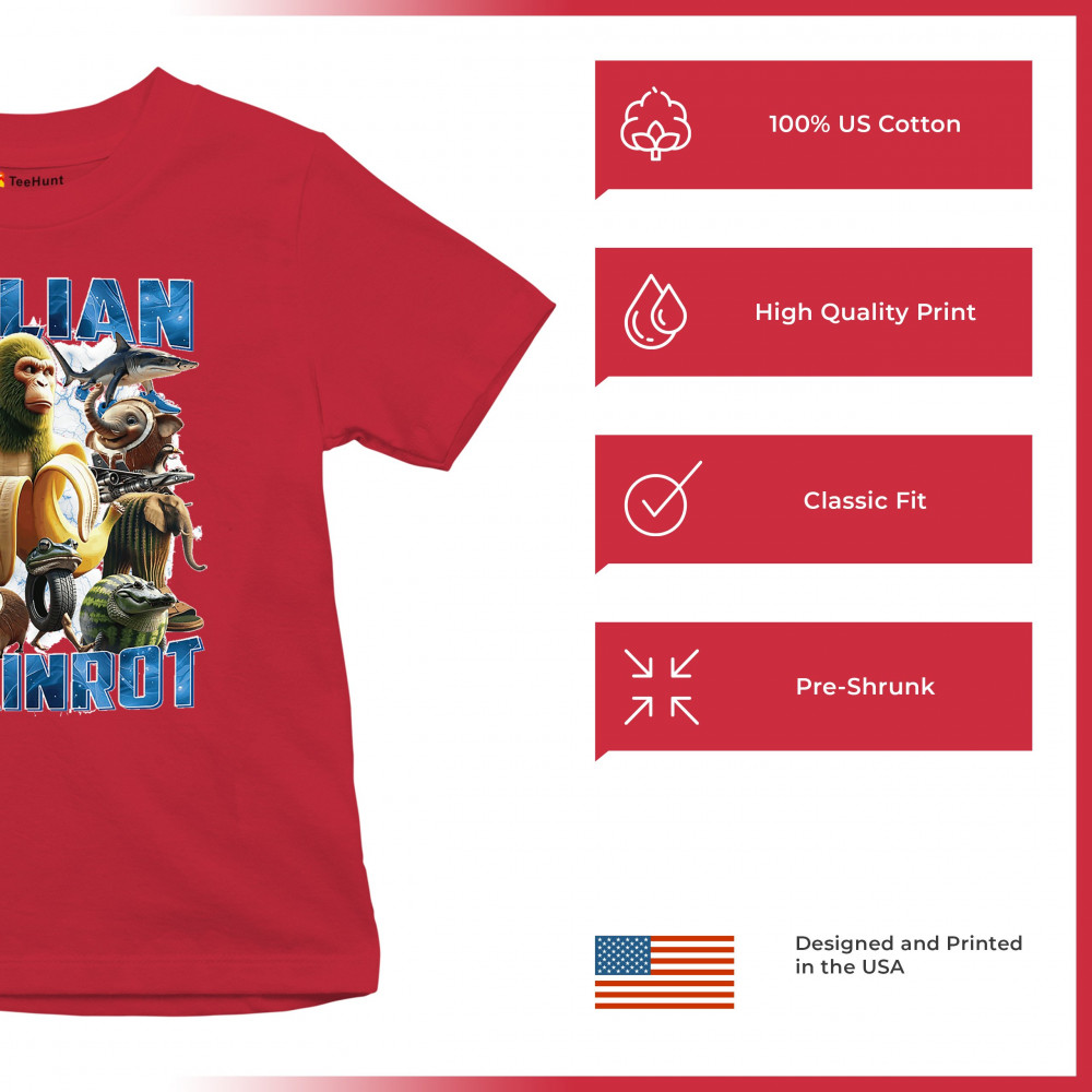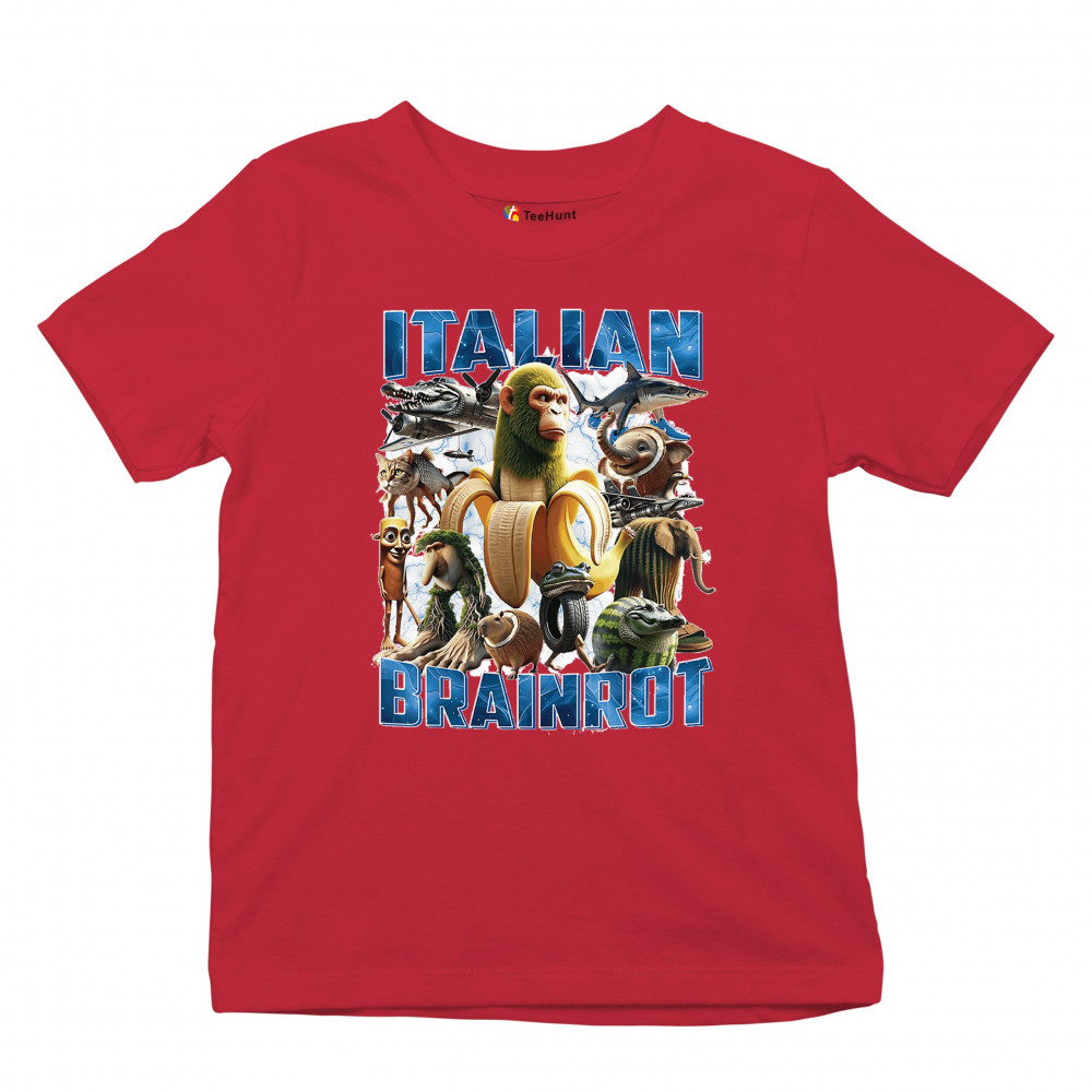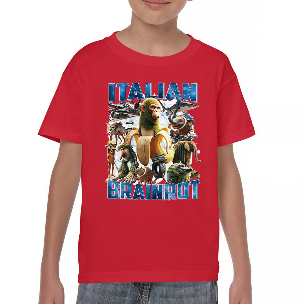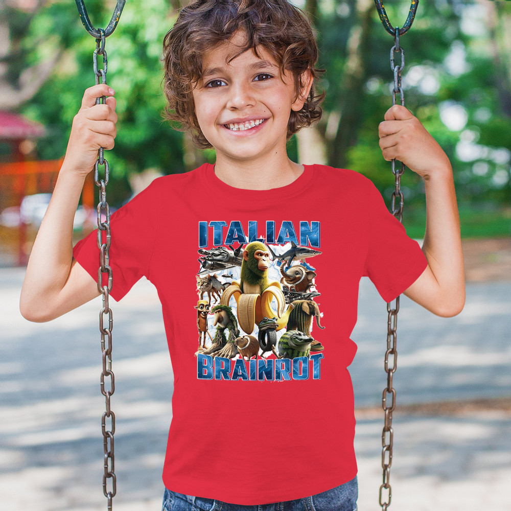 This design captures the full force of Italian brainrot—bananas, sharks, monkeys, and meme beasts collide in an unfiltered internet-core explosion. Perfect for fans of cursed humor, Gen Z trends, absurd fashion, TikTok memes, ironic style, surreal pop art, chaotic culture, digital nonsense, Gen Alpha brainrot, and hyper-online energy.