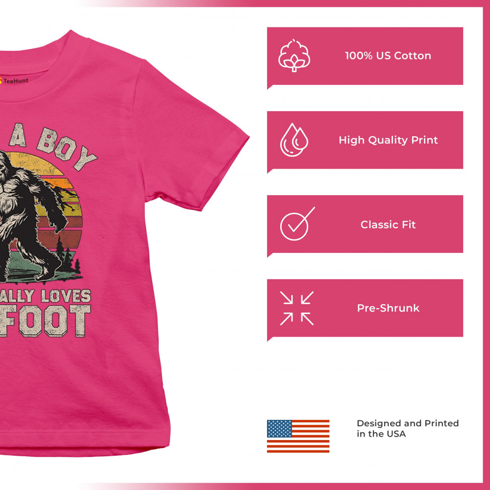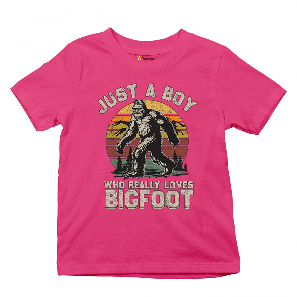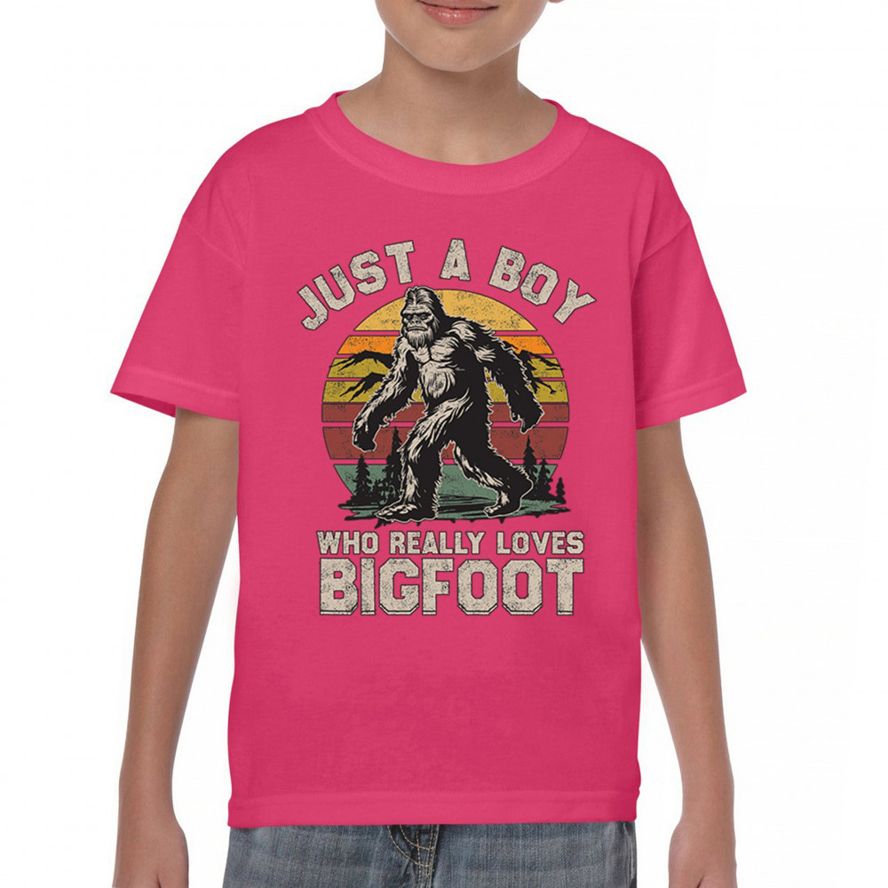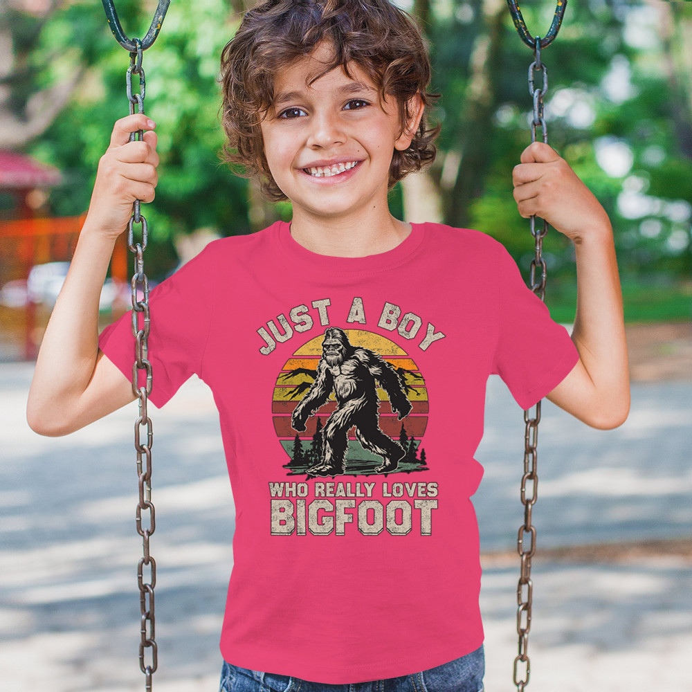 Celebrate Bigfoot love with this retro "Just a Boy Who Really Loves Bigfoot" design—perfect for cryptid fans and outdoor adventurers alike!