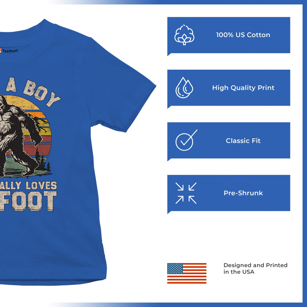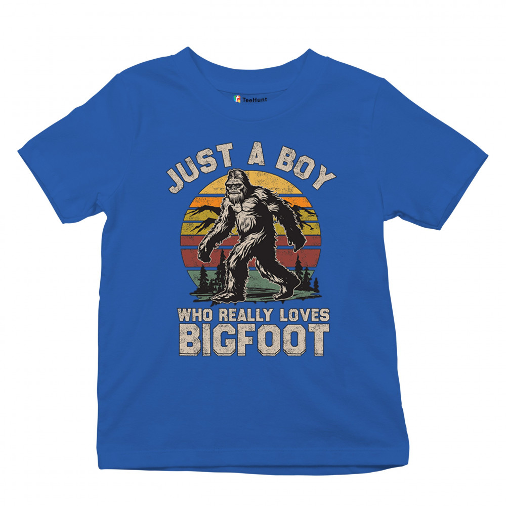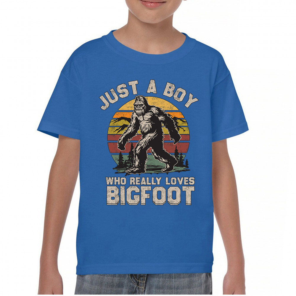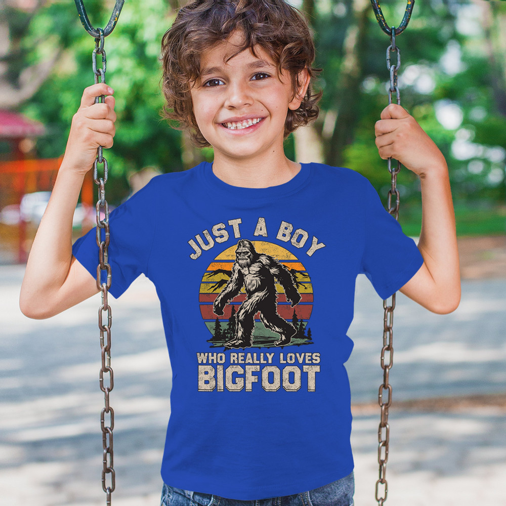 Celebrate Bigfoot love with this retro "Just a Boy Who Really Loves Bigfoot" design—perfect for cryptid fans and outdoor adventurers alike!