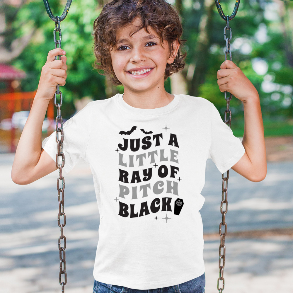 Showcase your dark humor with the "Just a Little Ray of Pitch Black" design—perfect for Halloween or everyday gothic style.