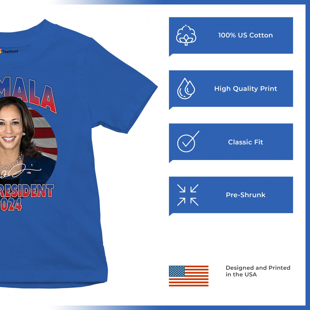 Kamala Harris's 2024 presidential campaign design captures the essence of hope and progress. Featuring a bold and vibrant graphic with her name, portrait, and the American flag, this design symbolizes the fight for liberal values, women's rights, and LGBTQ+ equality. It's perfect for supporters who want to make a statement at rallies, events, or in everyday life. Show your support for a brighter future with this compelling design.