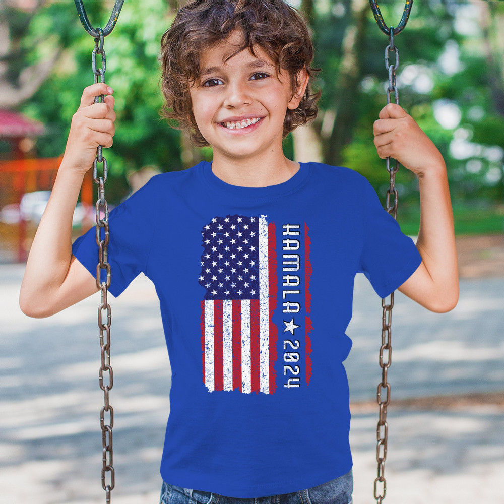 Support Kamala Harris 2024 with a bold design featuring a distressed American flag. Perfect for rallies and political events. Celebrate diversity!