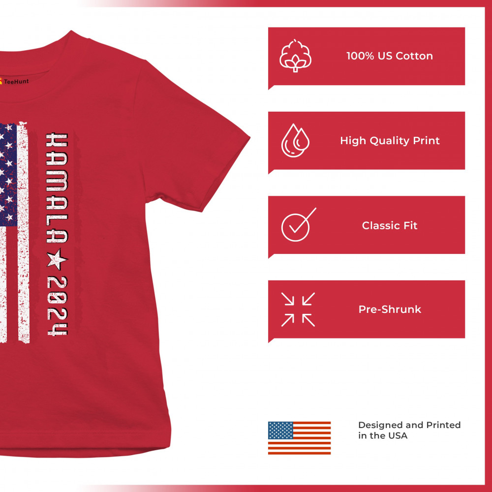 Support Kamala Harris 2024 with a bold design featuring a distressed American flag. Perfect for rallies and political events. Celebrate diversity!