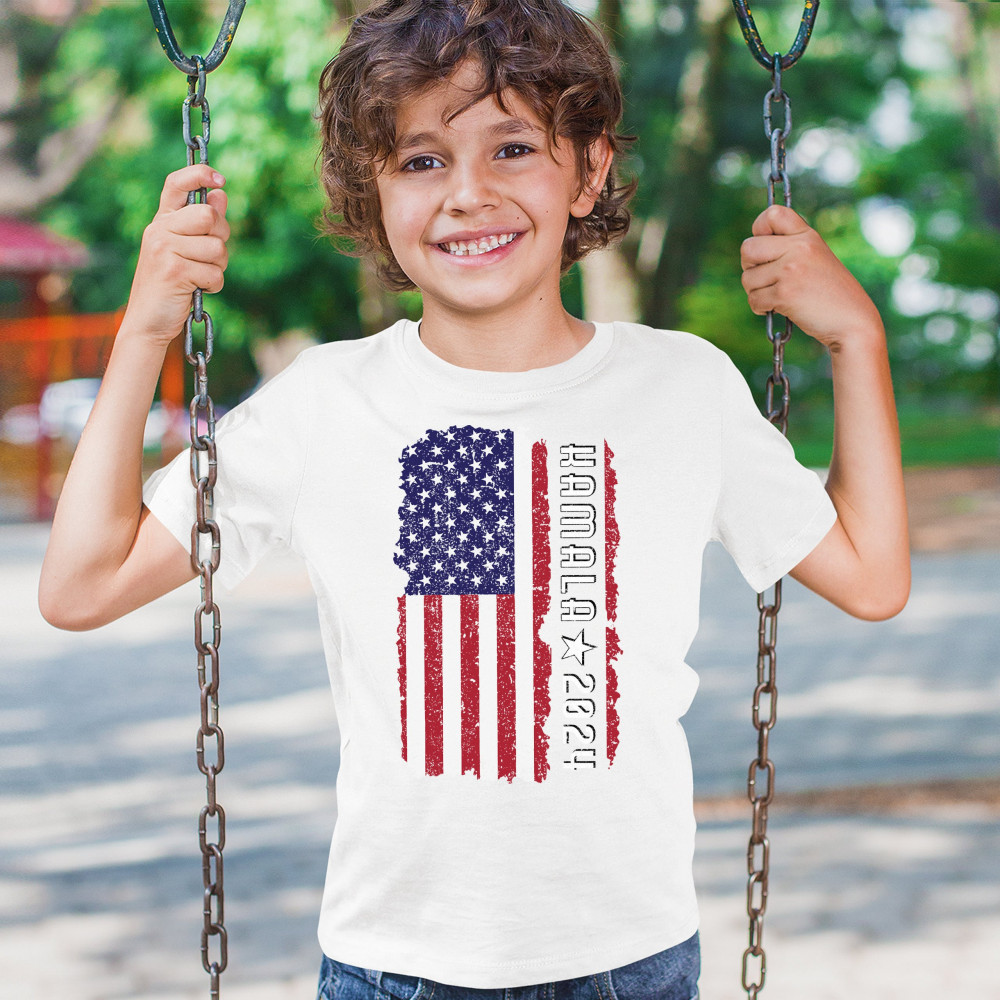 Support Kamala Harris 2024 with a bold design featuring a distressed American flag. Perfect for rallies and political events. Celebrate diversity!