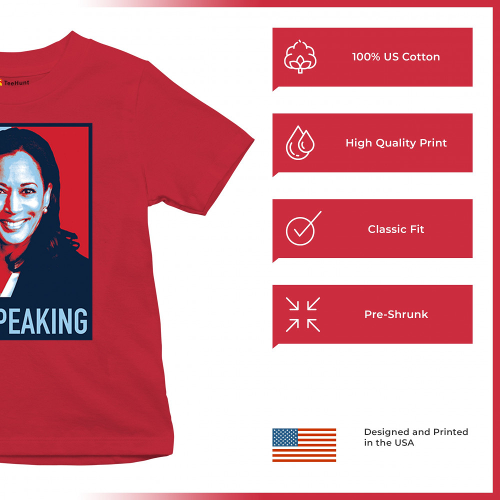Featuring the iconic "I'm Speaking" image of Kamala Harris, this design is perfect for showing your support for the Harris-Walz 2024 campaign. The red, white, and blue colors make a bold statement, celebrating the values of equality and justice. With a focus on liberal values, including LGBTQ+ rights, women's empowerment, and progressive policies, this design is ideal for rallies or everyday wear. Stand up for what you believe in and wear this design with pride. "Let's Win This"