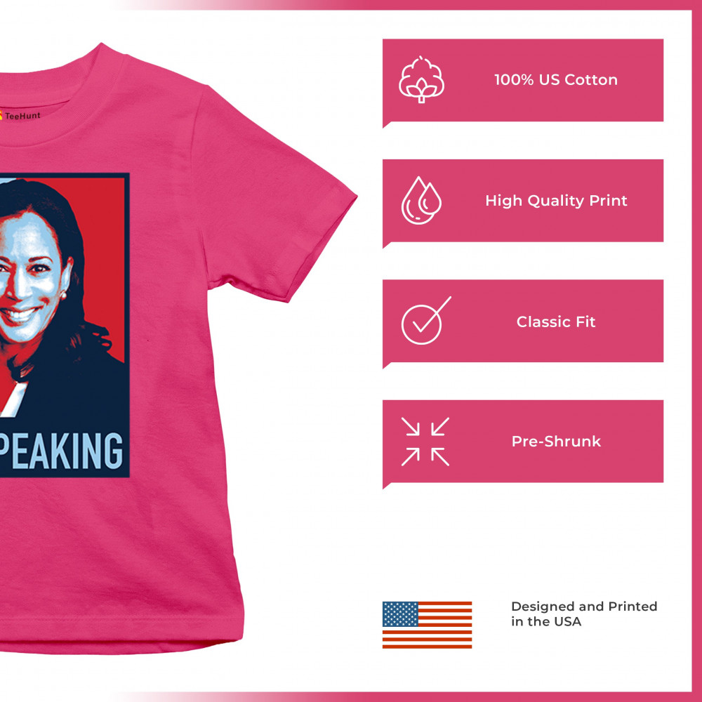Featuring the iconic "I'm Speaking" image of Kamala Harris, this design is perfect for showing your support for the Harris-Walz 2024 campaign. The red, white, and blue colors make a bold statement, celebrating the values of equality and justice. With a focus on liberal values, including LGBTQ+ rights, women's empowerment, and progressive policies, this design is ideal for rallies or everyday wear. Stand up for what you believe in and wear this design with pride. "Let's Win This"