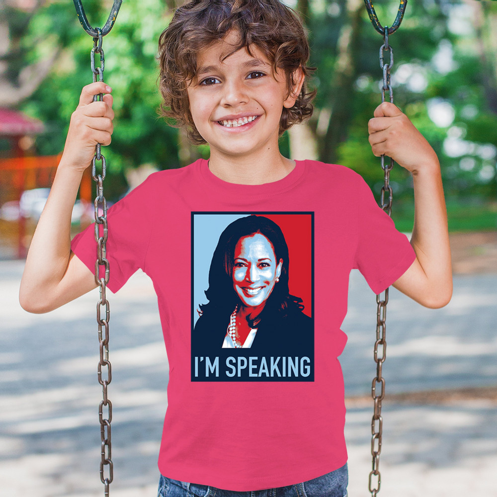 Show your support for Kamala Harris and Tim Walz with this "I'm Speaking" design. A bold statement celebrating liberal values and progressive policies. "Let's Win This"