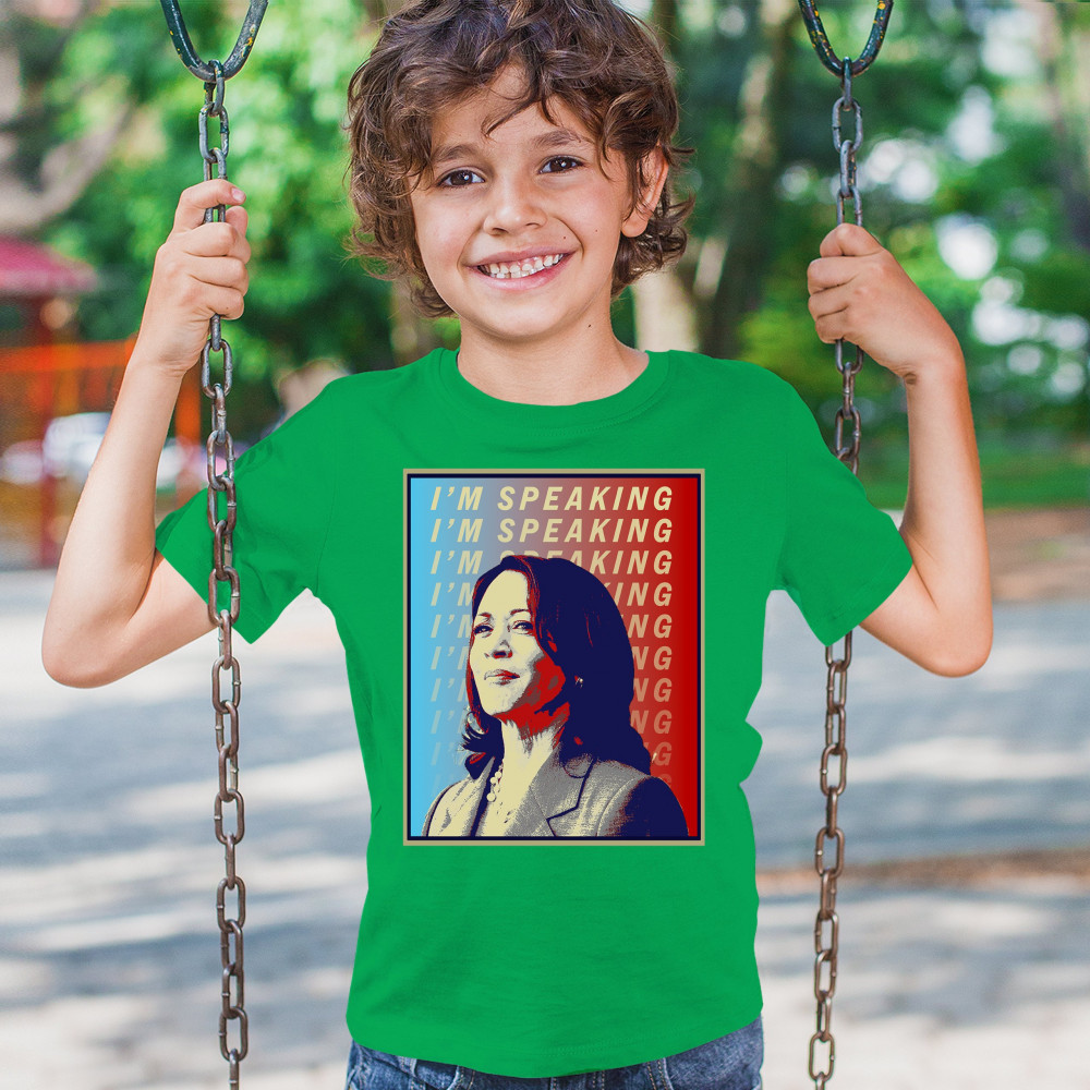 Support Kamala Harris with this bold and inspiring design. "I'M SPEAKING" echoes her powerful voice in the political arena, making it perfect for anti-Trump supporters, liberals, and Democrats. Crafted from durable materials, this design is comfortable for any event, from rallies to casual outings. Celebrate diversity and the historic candidacy of the potential first female president, resonating with black Americans, Hispanic Americans, LGBTQ supporters, and other minorities. Make a statement of hope and progress with this unique design.