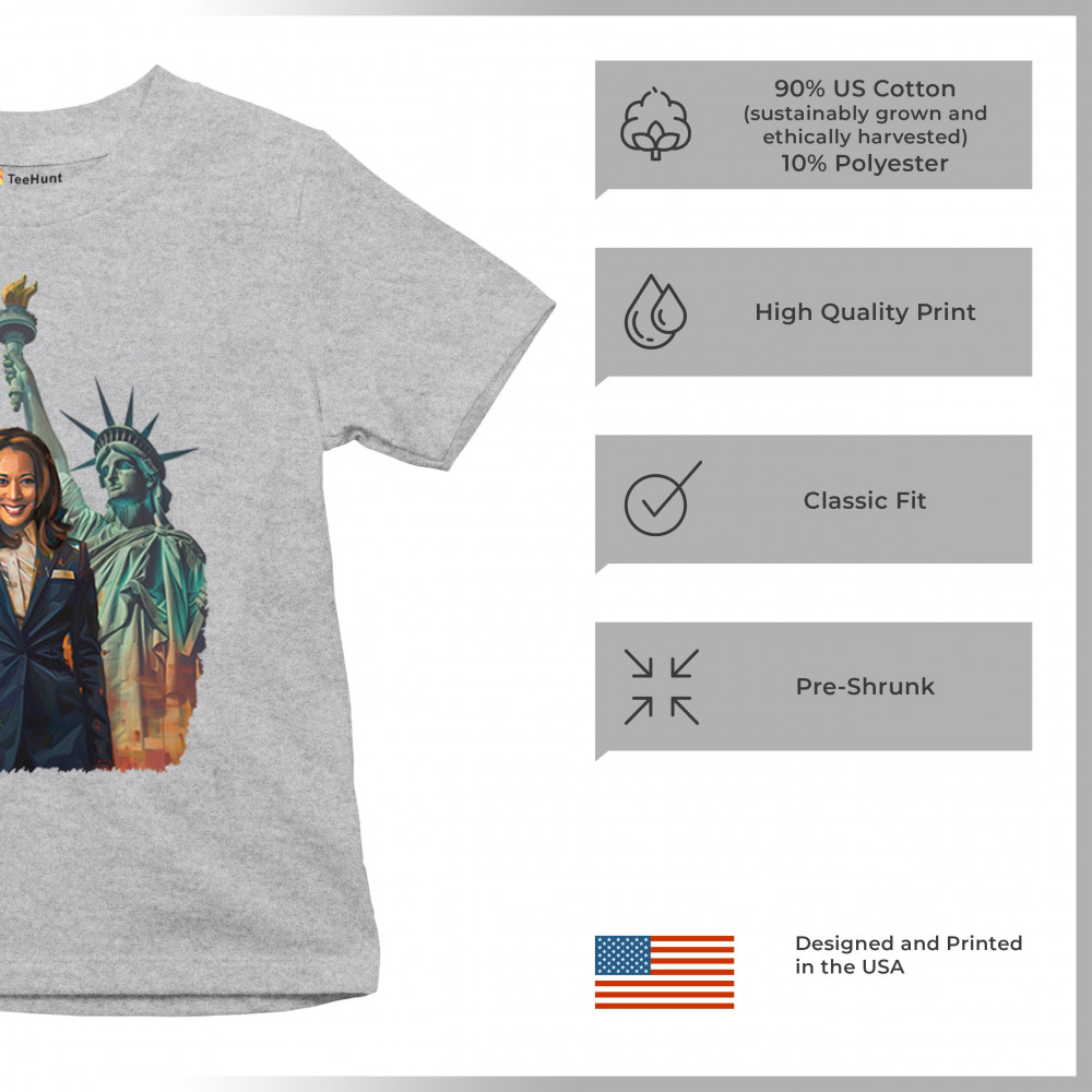 Show your support for Harris-Walz 2024 with this bold design featuring Kamala Harris and the Statue of Liberty. Stand for justice, equality, and a brighter future.