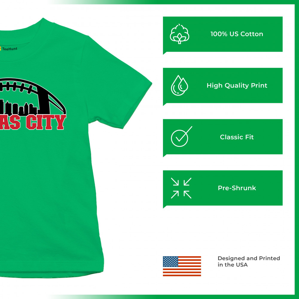 Celebrate Kansas City with a bold football design featuring the city skyline. Perfect for game days, tailgates, or proud sports fans.