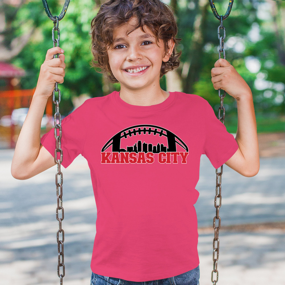 Celebrate Kansas City with a bold football design featuring the city skyline. Perfect for game days, tailgates, or proud sports fans.
