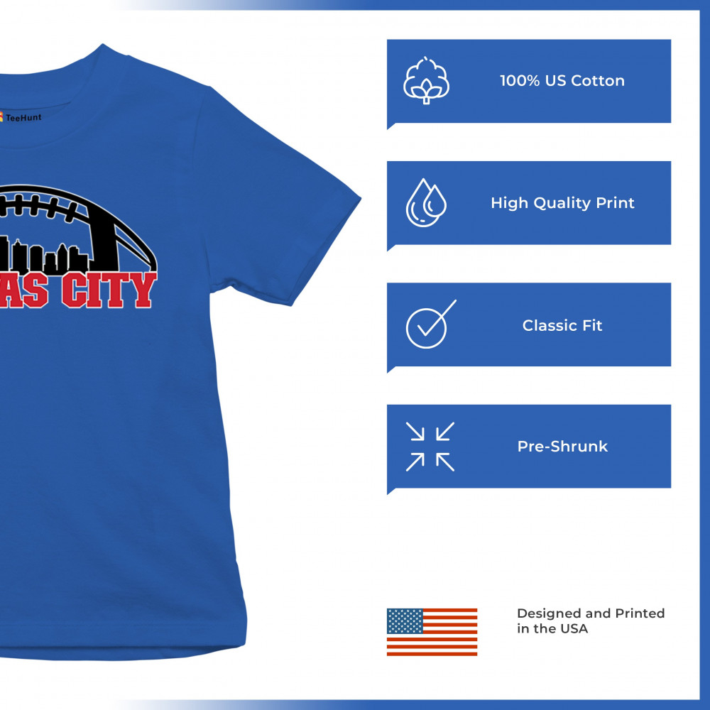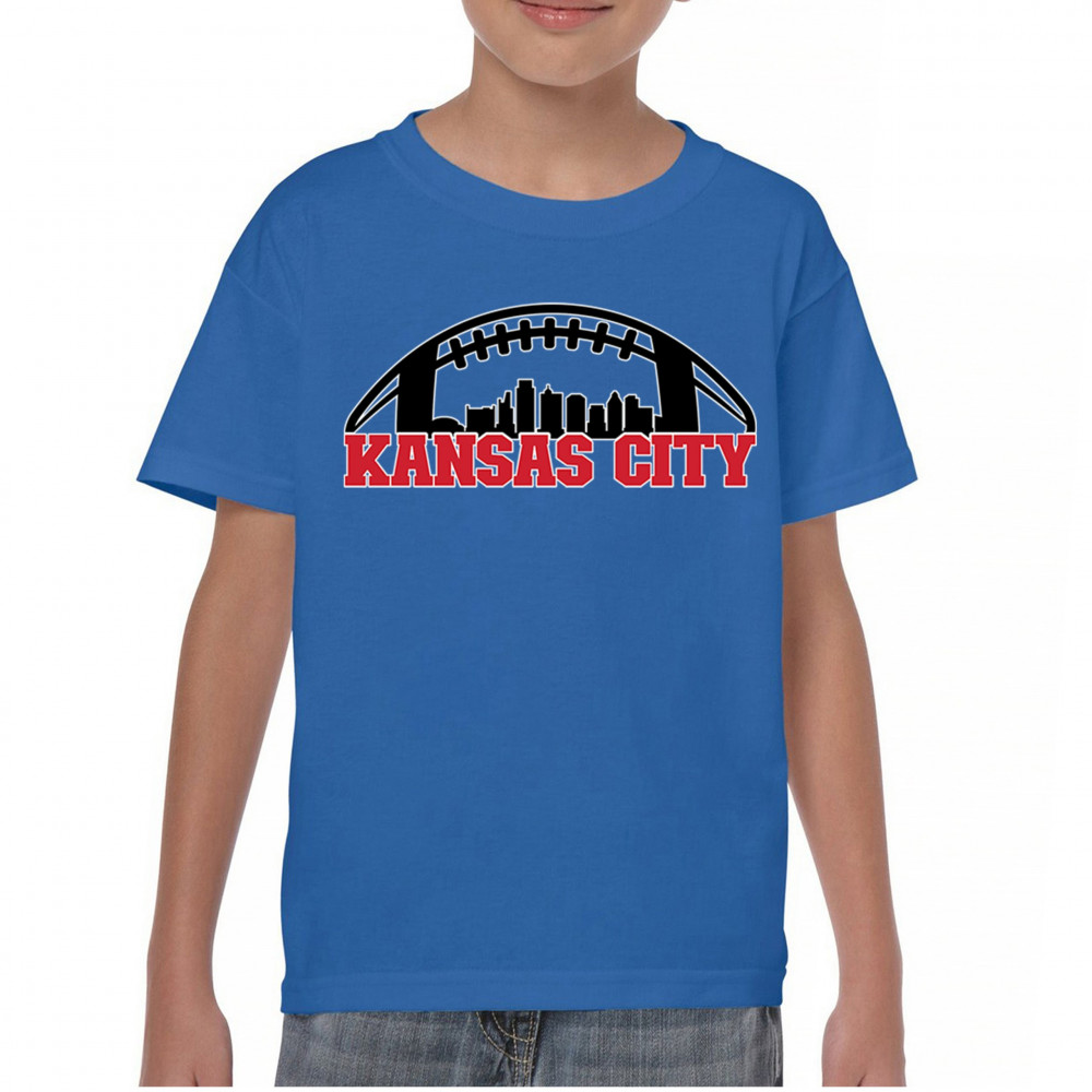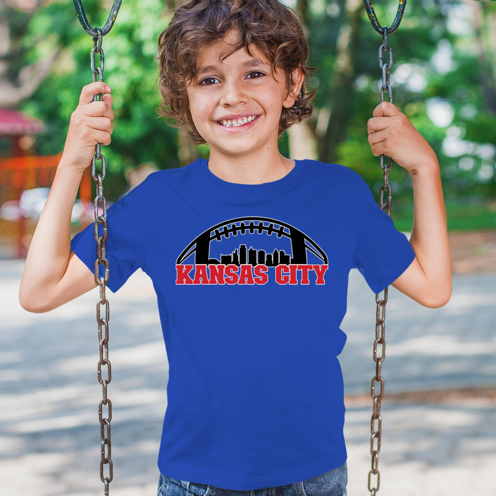 Celebrate Kansas City with a bold football design featuring the city skyline. Perfect for game days, tailgates, or proud sports fans.