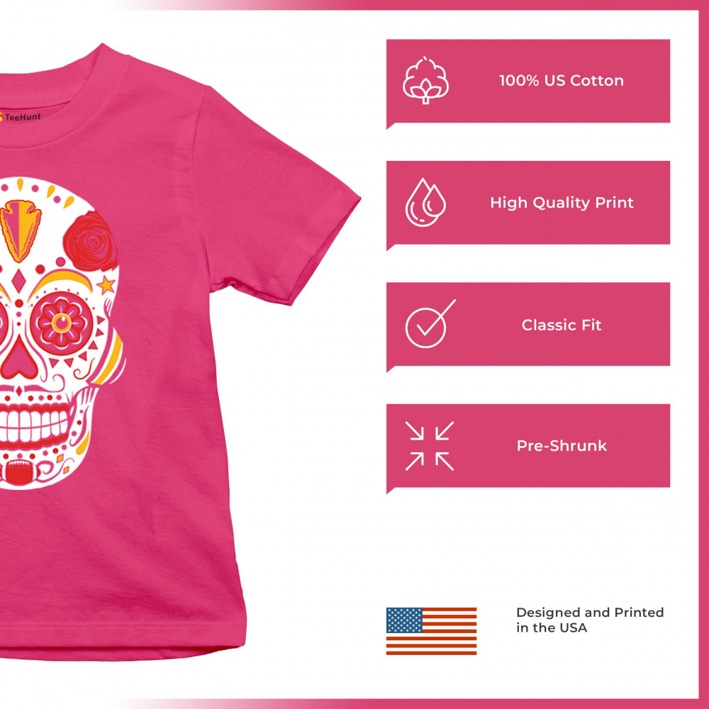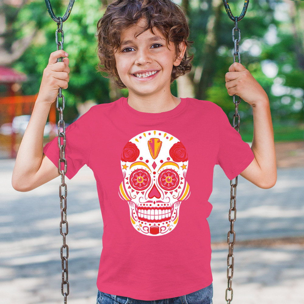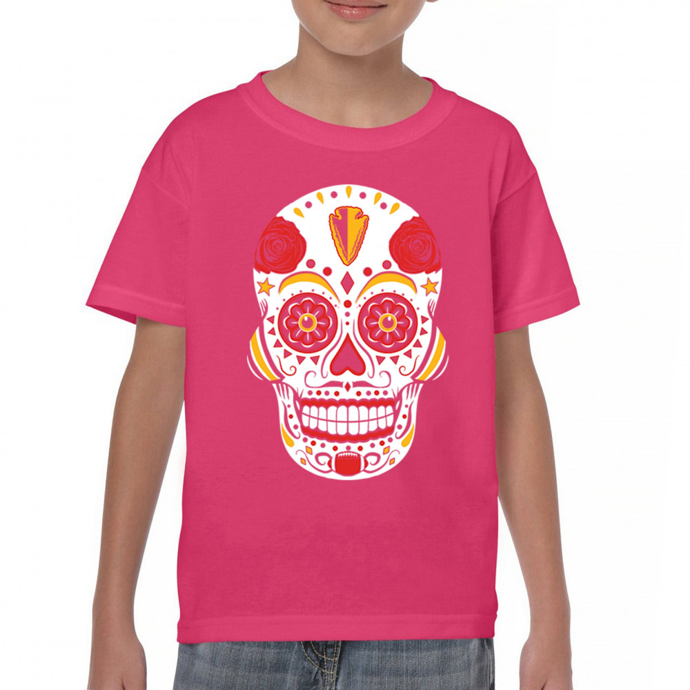 Celebrate Kansas City football with this Sugar Skull design inspired by Dia de los Muertos. Featuring Heart of America pride, red & gold tradition, and City of Fountains identity, it’s made for playoff energy, tailgate culture, and fantasy league rivalries. A bold calavera for KC fans.