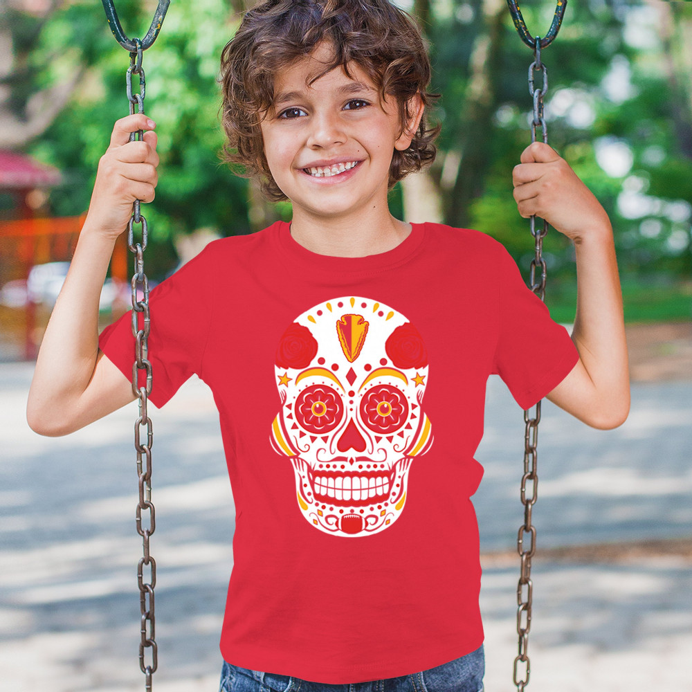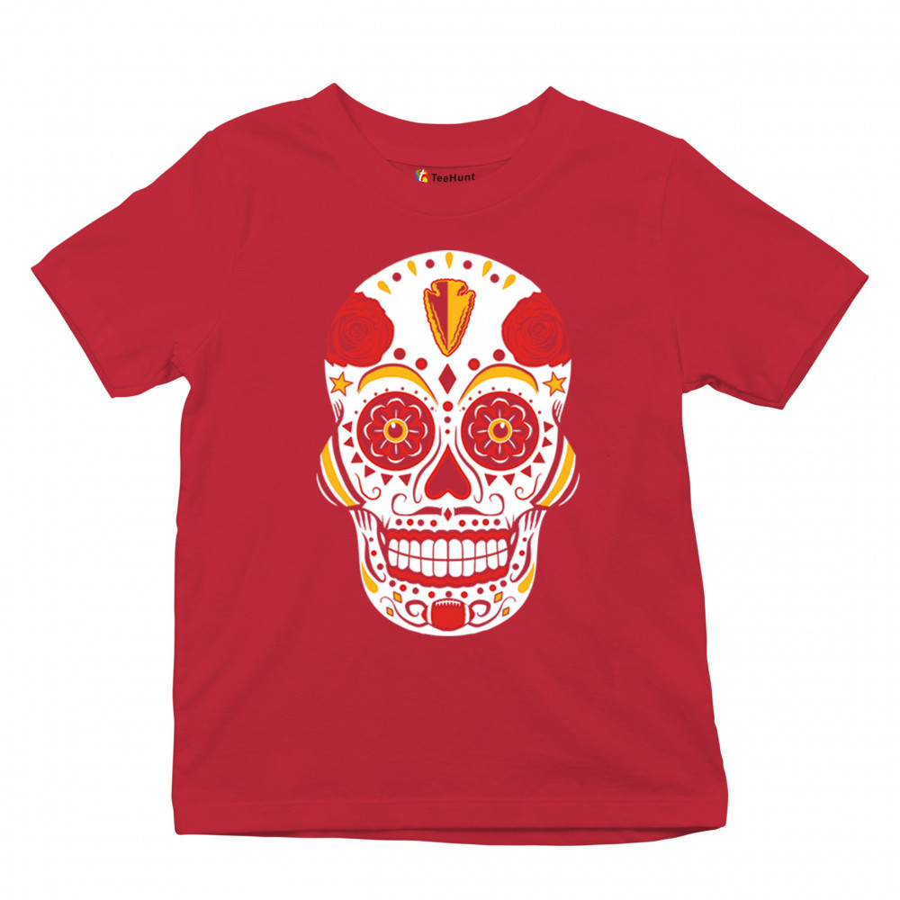 Celebrate Kansas City football with this Sugar Skull design inspired by Dia de los Muertos. Featuring Heart of America pride, red & gold tradition, and City of Fountains identity, it’s made for playoff energy, tailgate culture, and fantasy league rivalries. A bold calavera for KC fans.