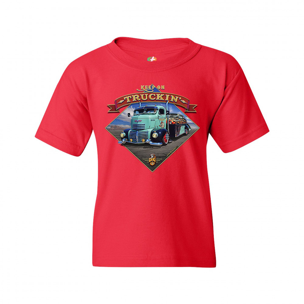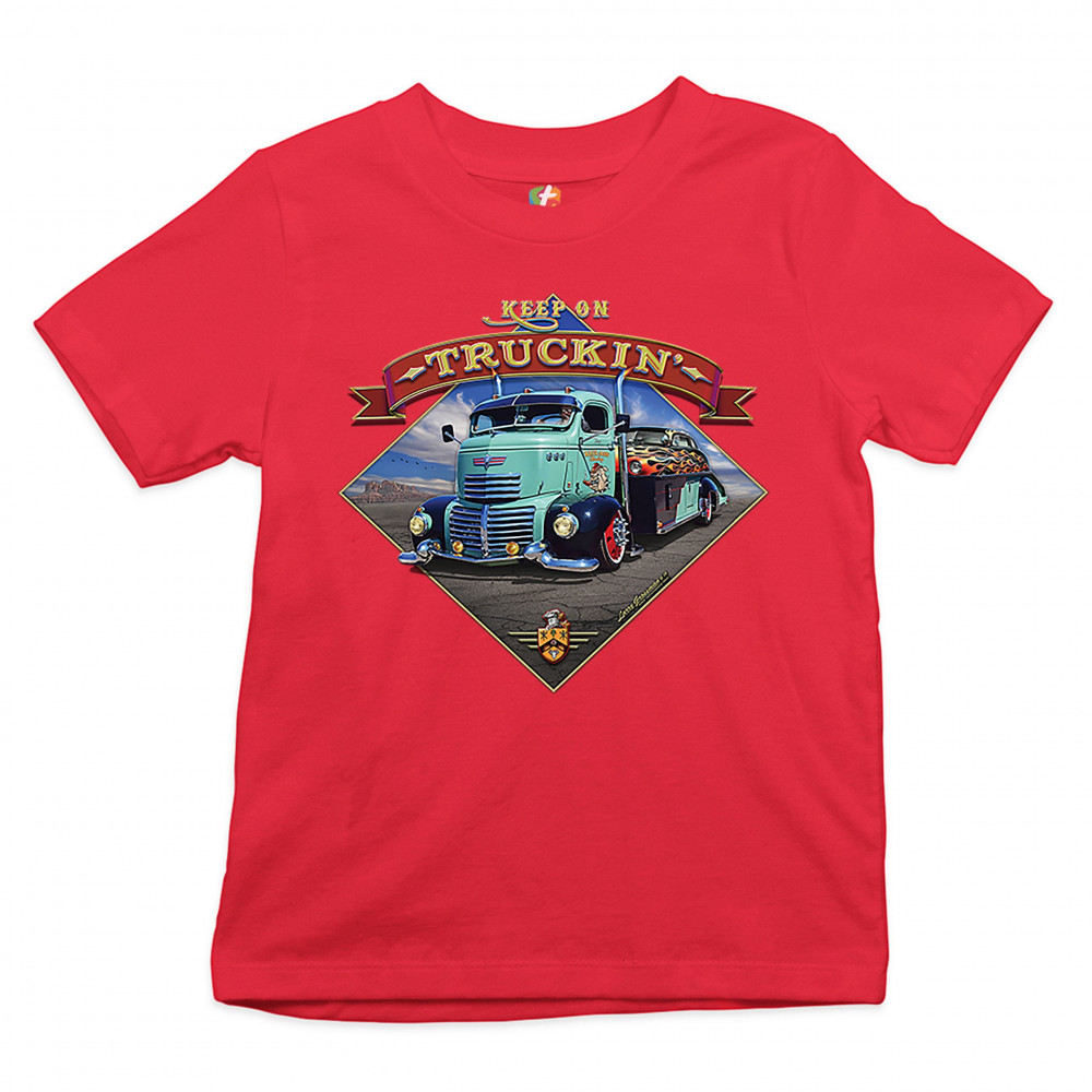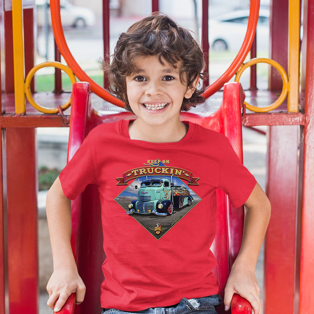 KEEP ON TRUCKIN' youth t-shirt route 66 retro vintage truck driver kids red