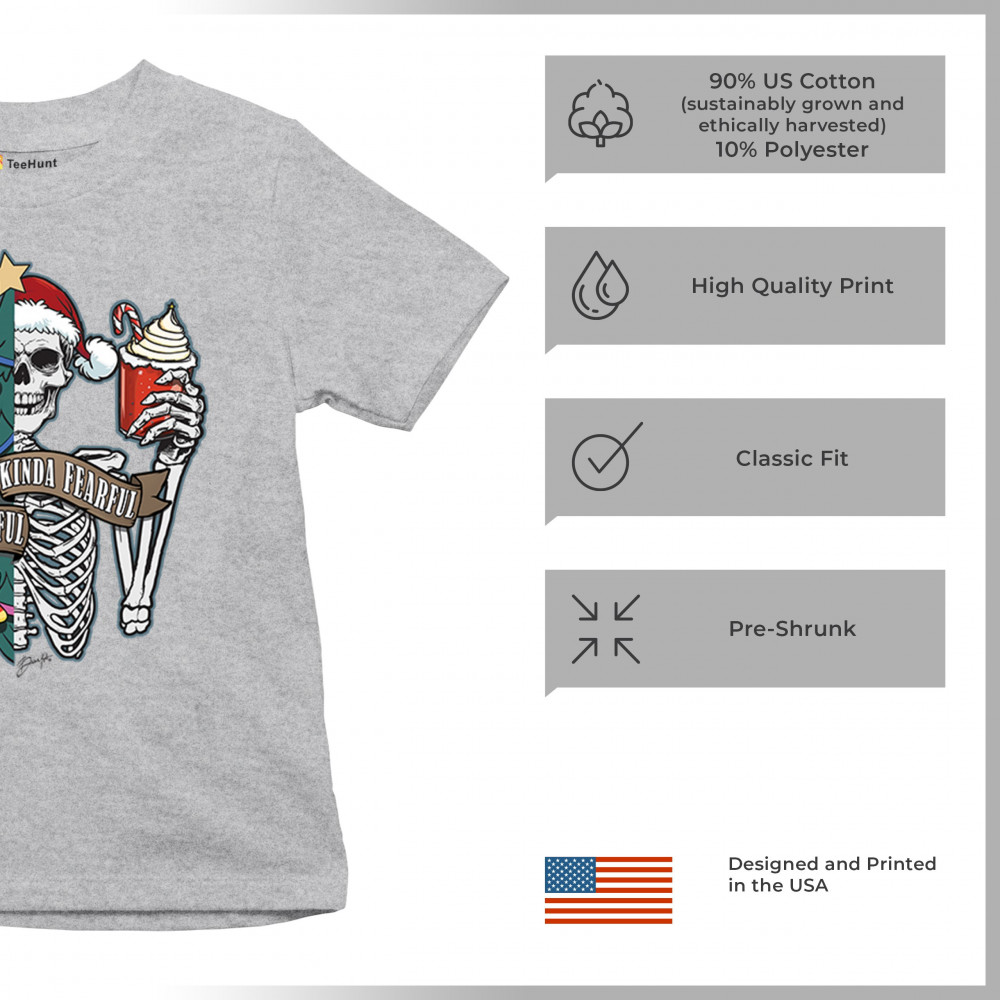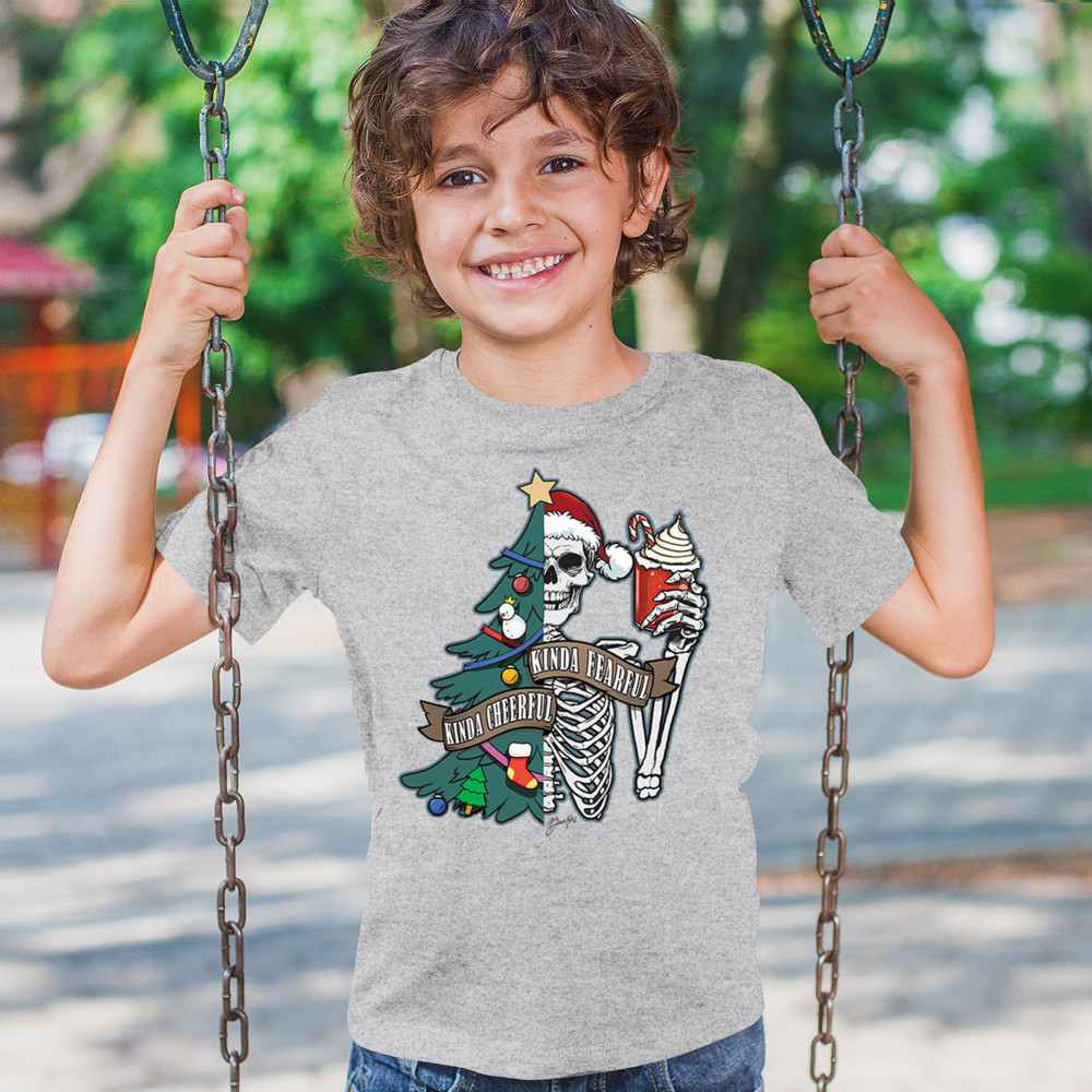 This creative Kinda Cheerful, Kinda Fearful design is a perfect blend of festive and spooky fun! Featuring a half-decorated Christmas tree and skeleton, it’s ideal for those who love combining Halloween and Christmas vibes. Great for secret Santa gifts, matching holiday pajamas, or rocking at your next ugly sweater contest. Perfect for office parties, family mornings, or simply adding some unique charm to your Feliz Navidad celebrations.