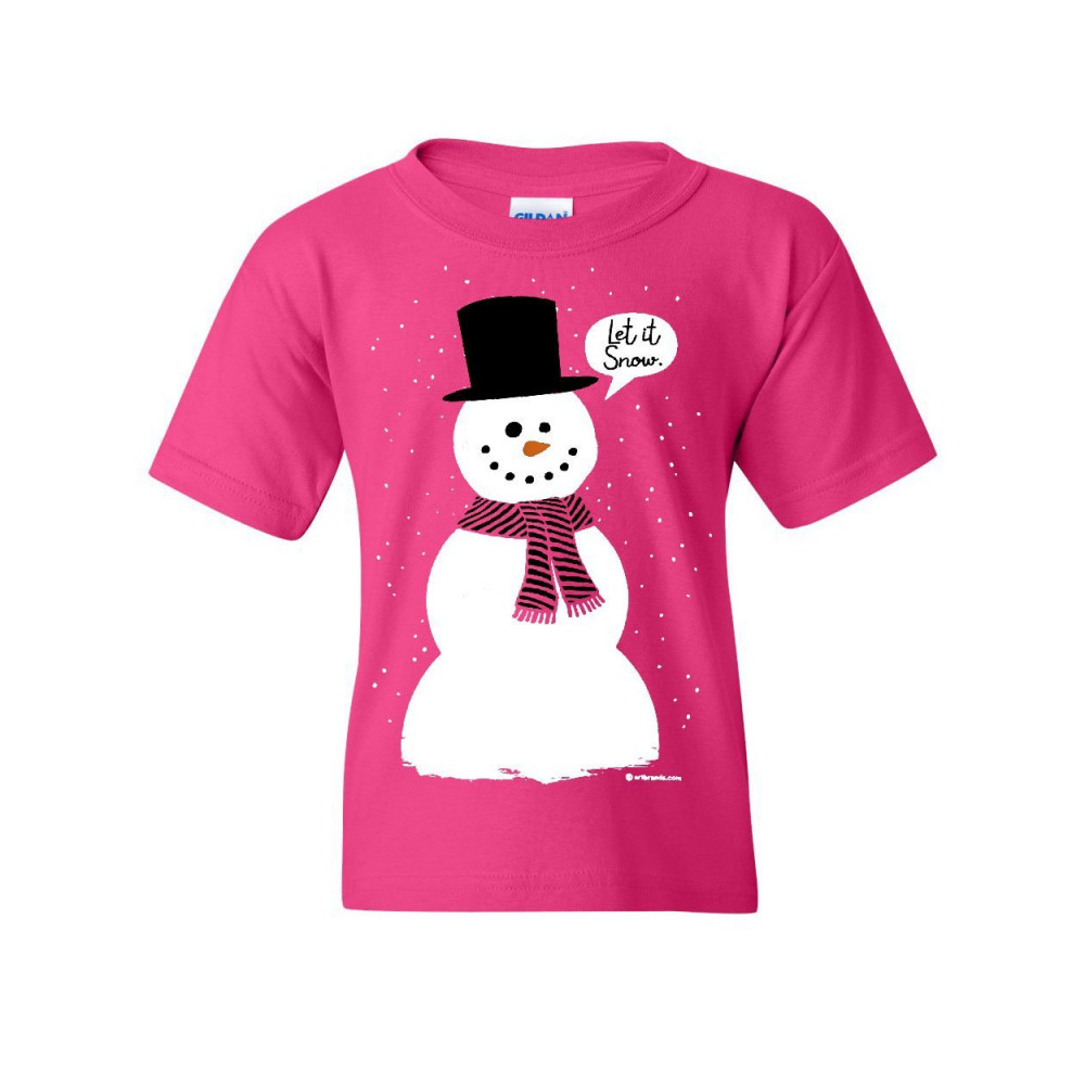 LET IT SNOW youth t-shirt funny snowman christmas xmas tee pink