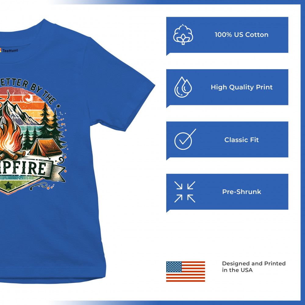 Life is Better by the Campfire brings rustic charm and outdoor adventure together with a glowing fire, mountain scenery, and pine forest. Ideal for forest lovers, campers, and national park explorers, this design evokes wilderness vibes, tent life, and the thrill of travel. Great value for anyone who believes adventure begins under the stars.