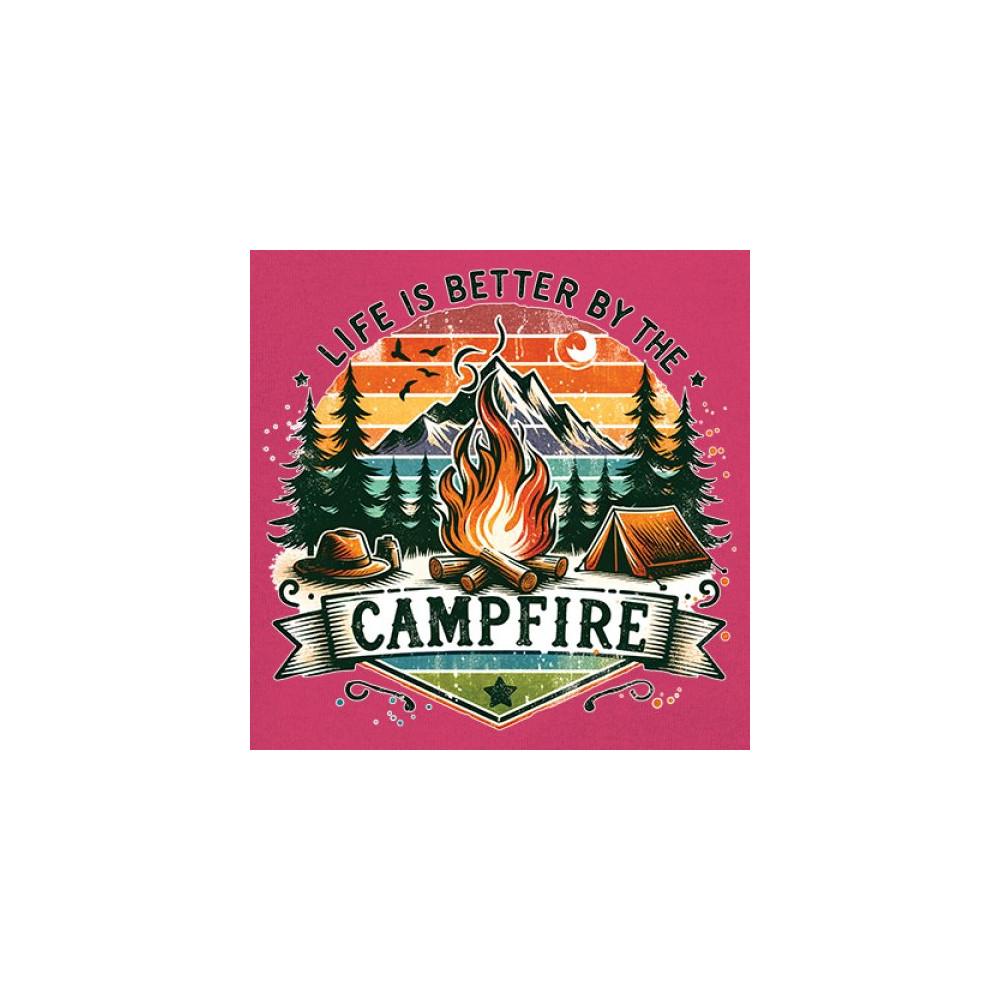 Life is Better by the Campfire brings rustic charm and outdoor adventure together with a glowing fire, mountain scenery, and pine forest. Ideal for forest lovers, campers, and national park explorers, this design evokes wilderness vibes, tent life, and the thrill of travel. Great value for anyone who believes adventure begins under the stars.