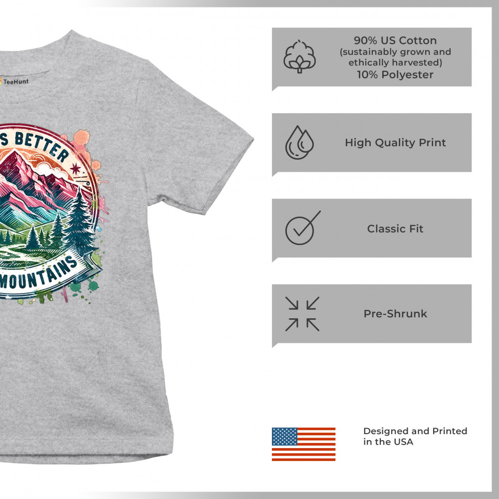 Life Is Better in the Mountains is designed for nature lovers, campers, and trail hikers who find peace in high altitudes. This colorful mountain scene captures wilderness vibes, camping escapes, and weekend hiking energy. Ideal for forest lovers, off-grid adventurers, and glamping fans alike.