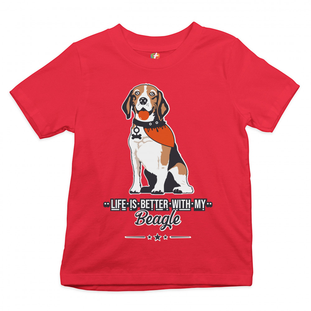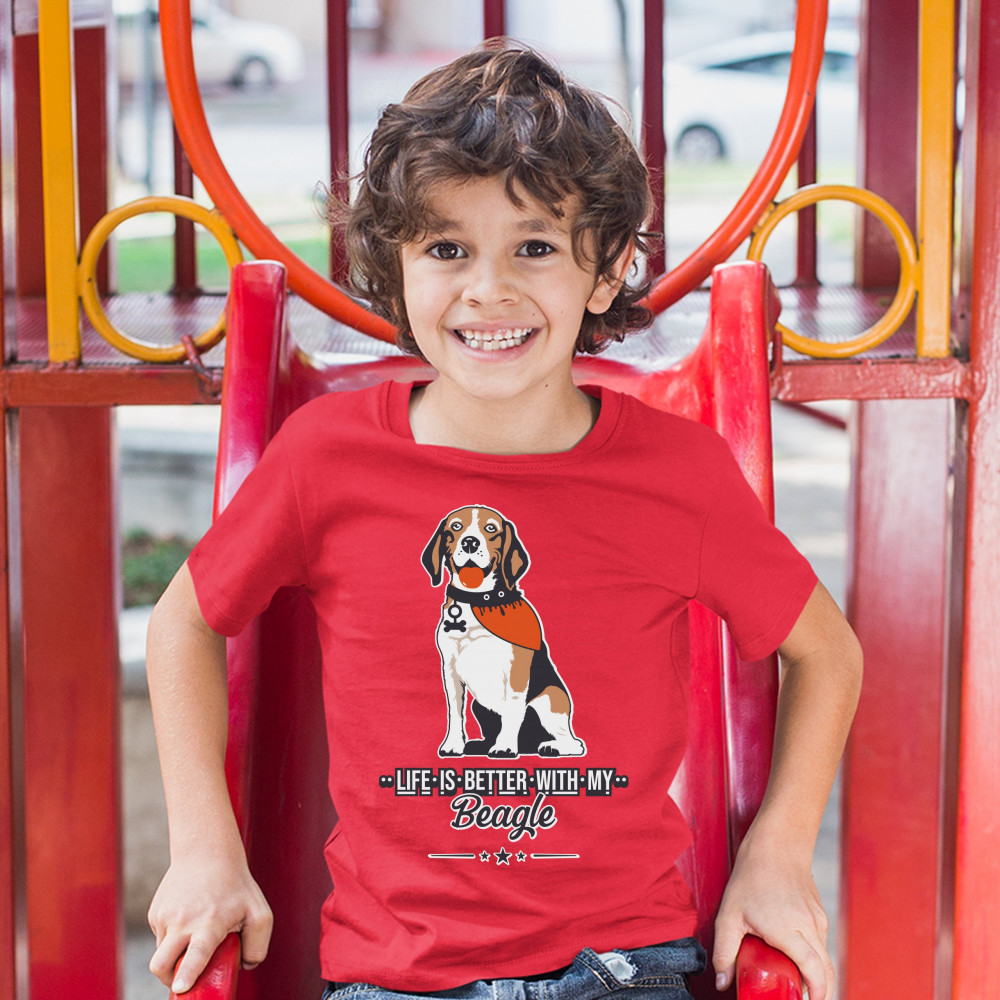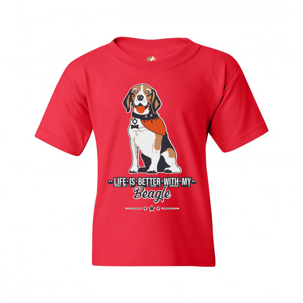 LIFE IS BETTER WITH MY BEAGLE youth t-shirt i love my dog best friend kids red