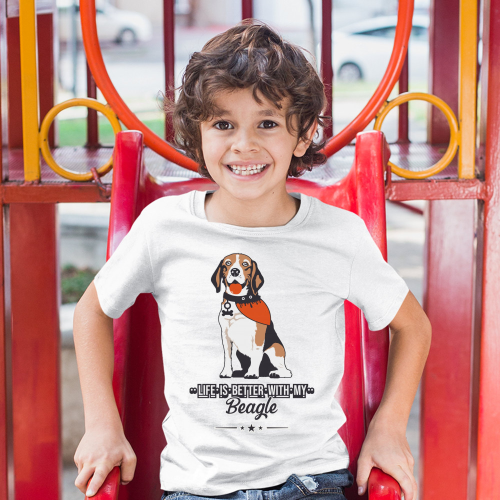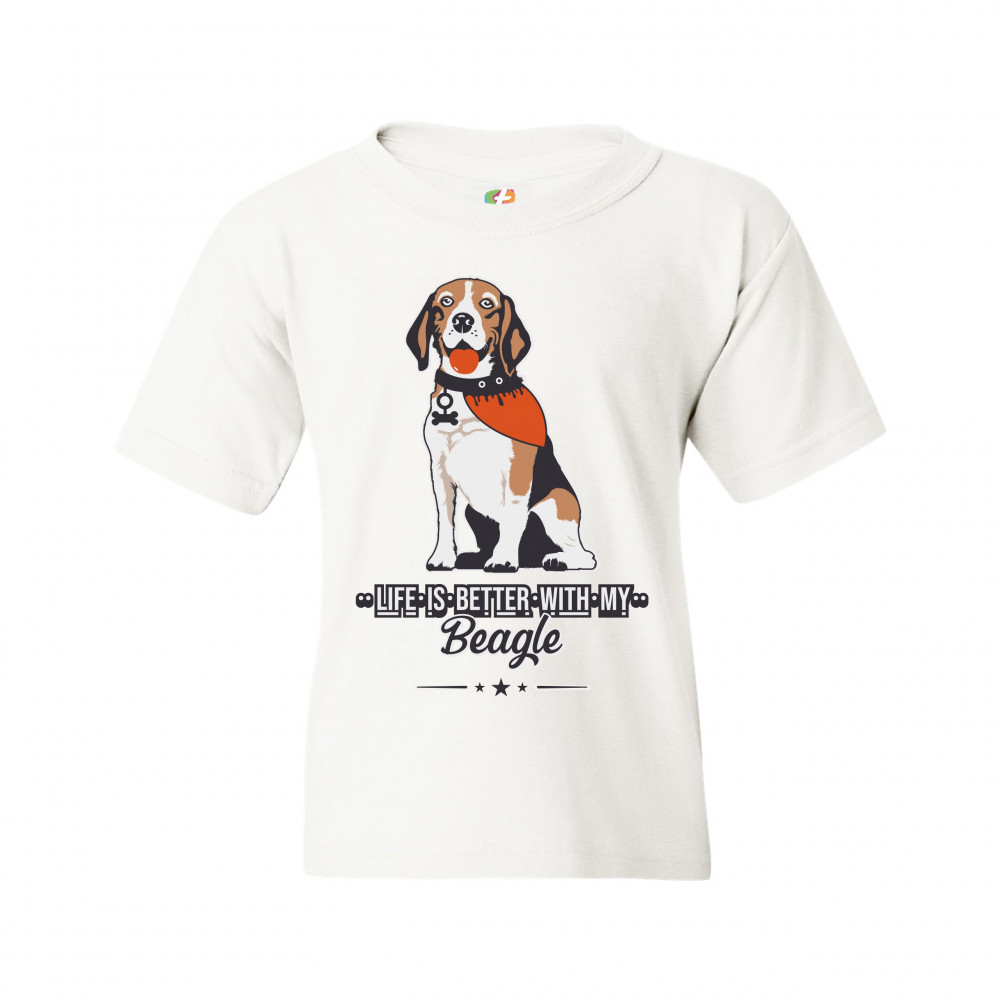 LIFE IS BETTER WITH MY BEAGLE youth t-shirt i love my dog best friend kids white