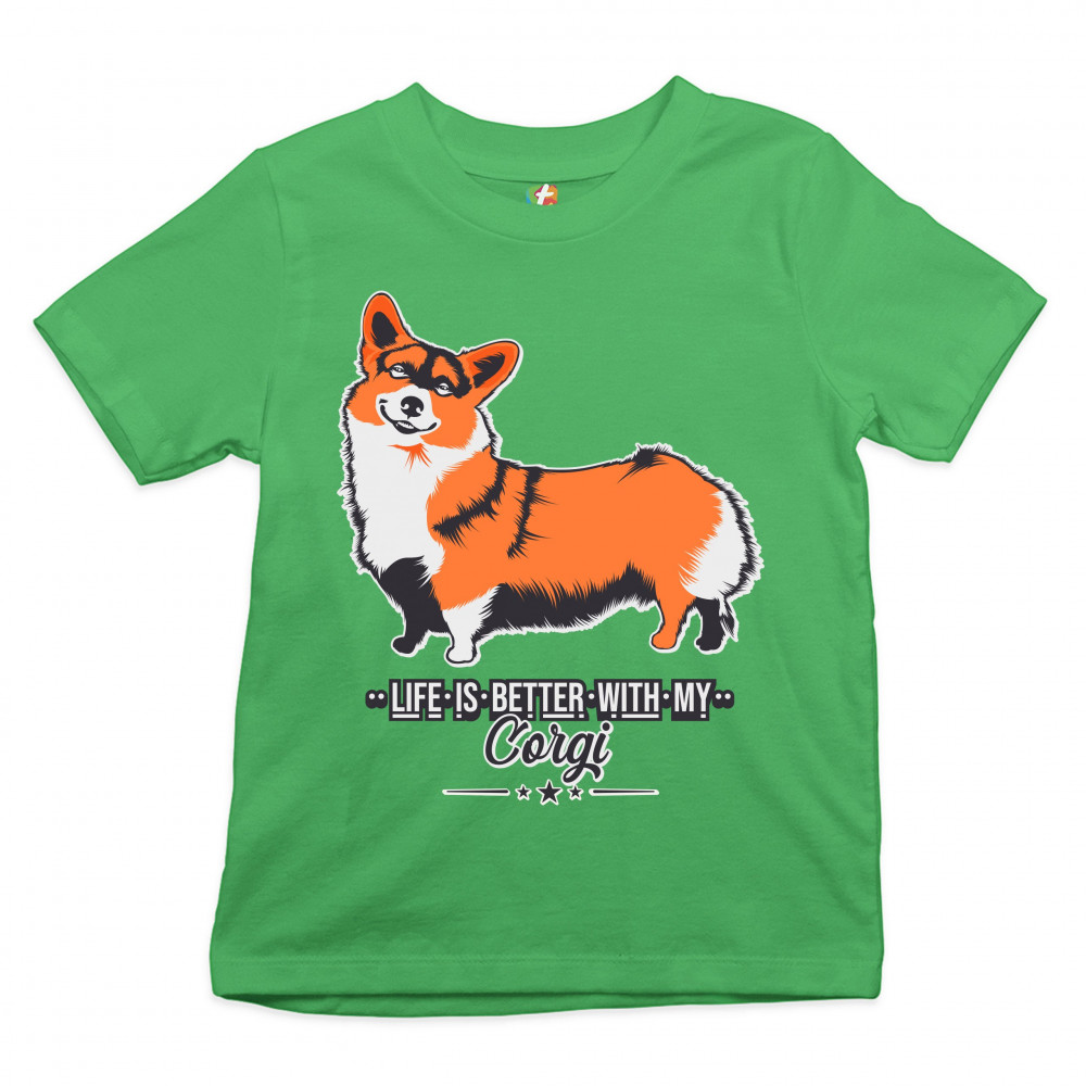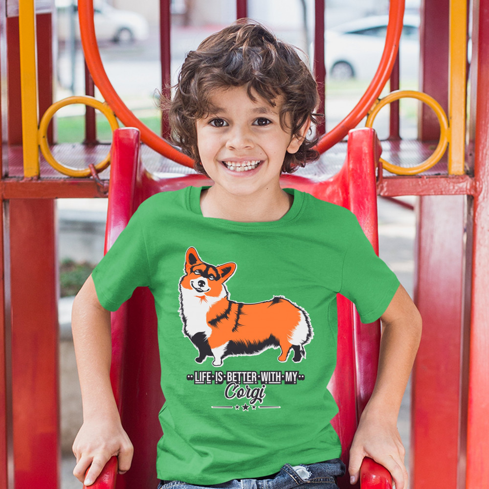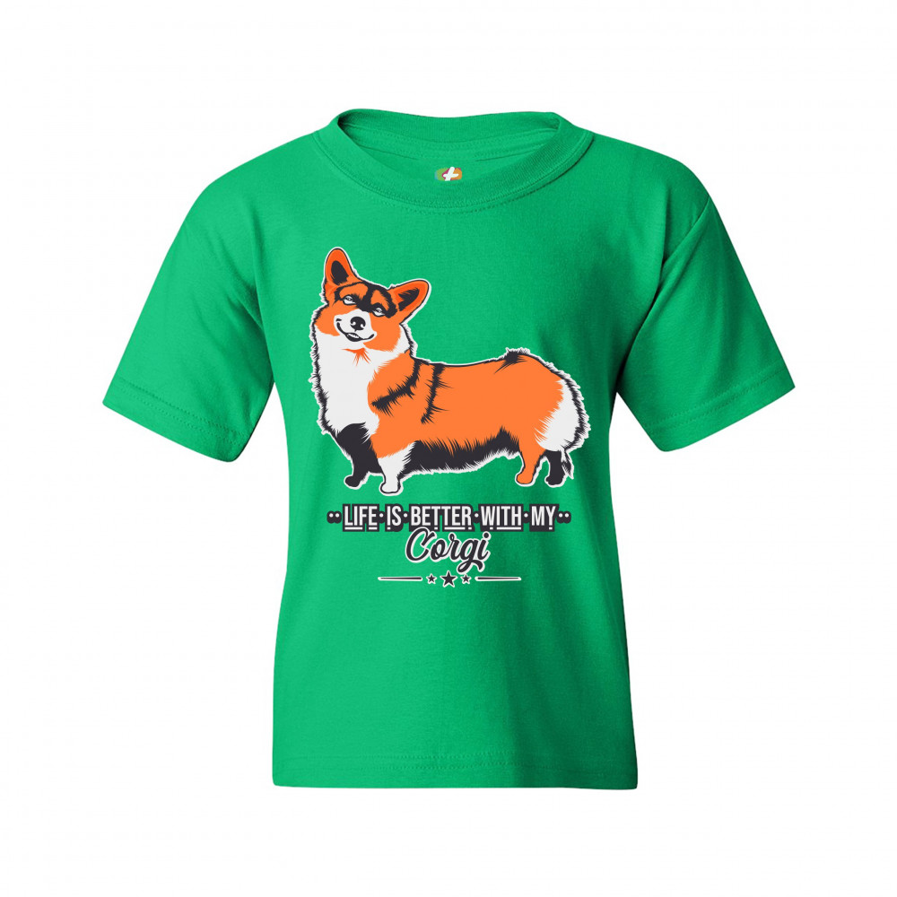 LIFE IS BETTER WITH MY CORGI youth t-shirt pet best friend dog lover kids green
