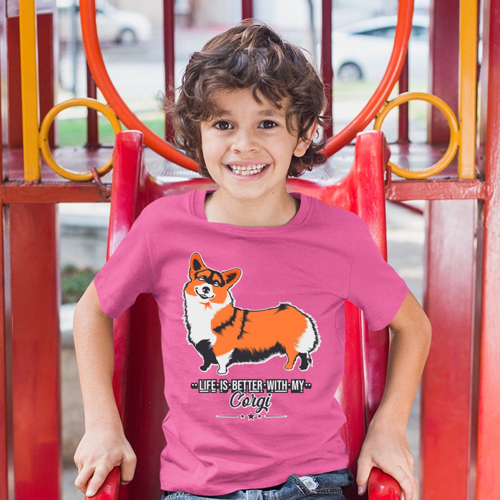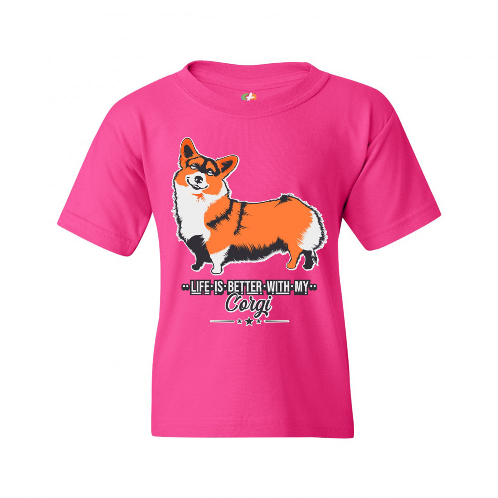 LIFE IS BETTER WITH MY CORGI youth t-shirt pet best friend dog lover kids pink