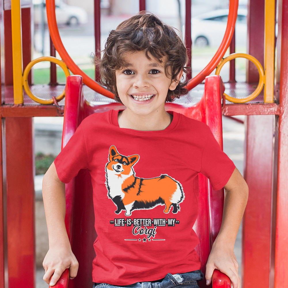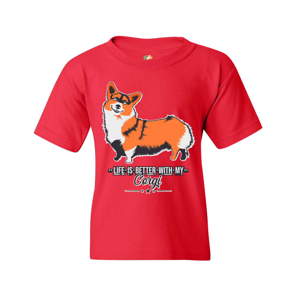 LIFE IS BETTER WITH MY CORGI youth t-shirt pet best friend dog lover kids red