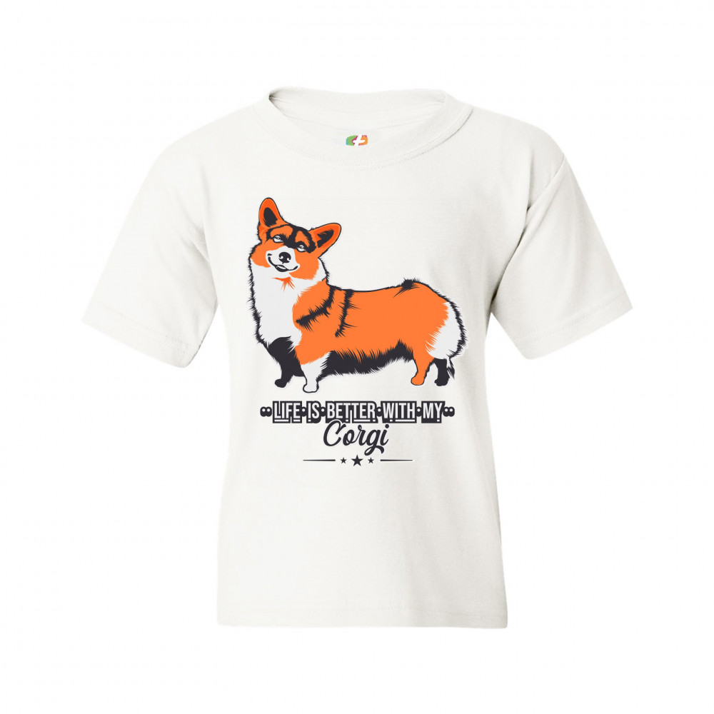 LIFE IS BETTER WITH MY CORGI youth t-shirt pet best friend dog lover kids white