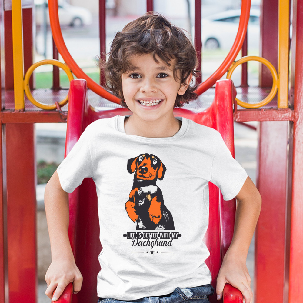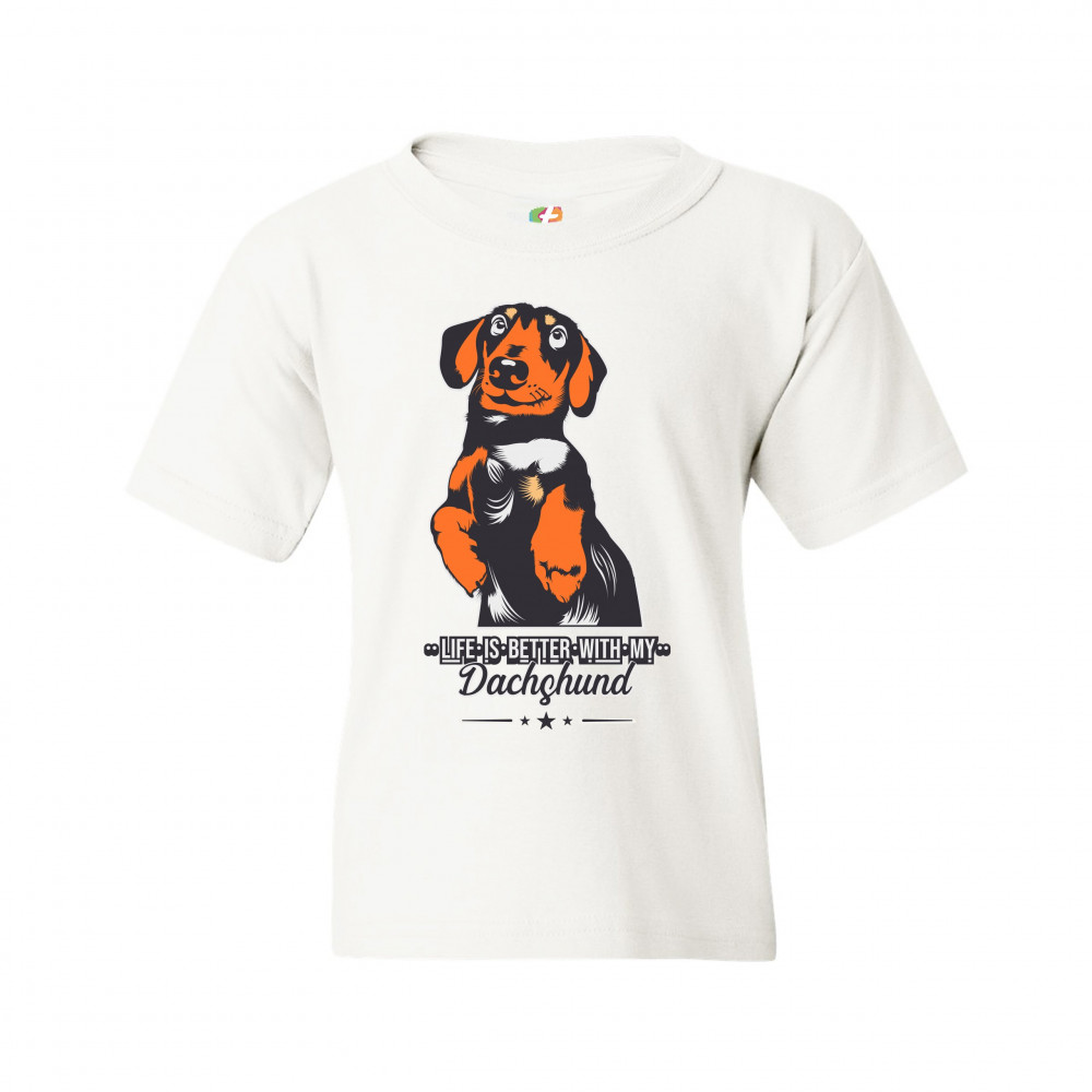 LIFE IS BETTER WITH MY DACHSUND youth t-shirt pet lover i love my dog kids white