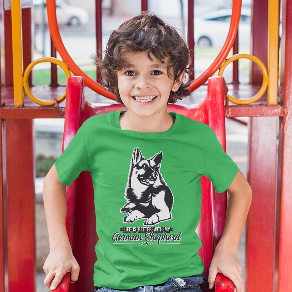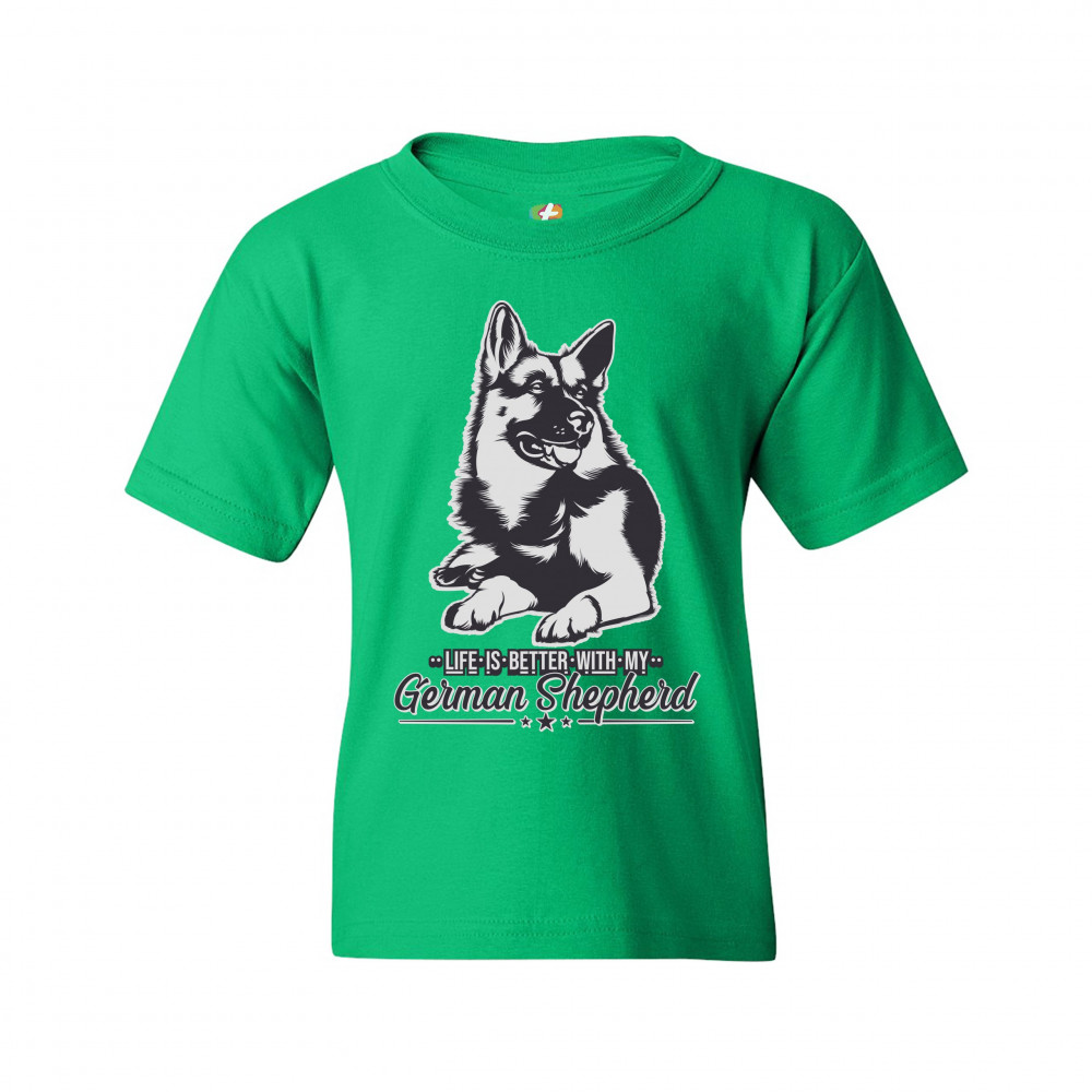 LIFE IS BETTER WITH MY GERMAN SHEPHERD youth t-shirt dog lover pet kids green