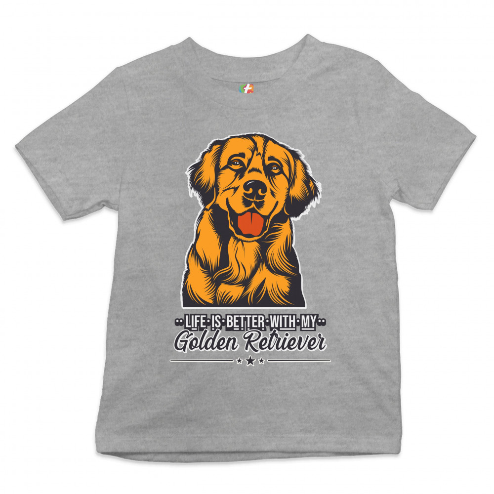 LIFE IS BETTER WITH MY GOLDEN RETRIEVER youth t-shirt puppy dog owner kids gray