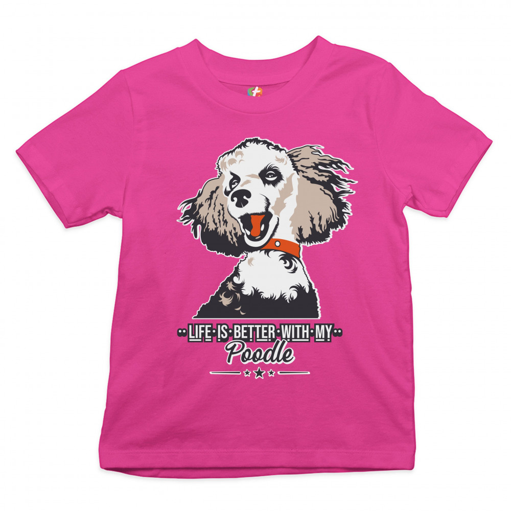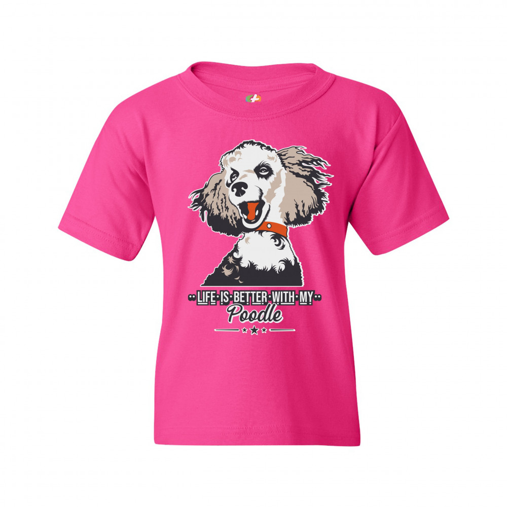 LIFE IS BETTER WITH MY POODLE youth t-shirt cute puppy dog lover pet kids pink