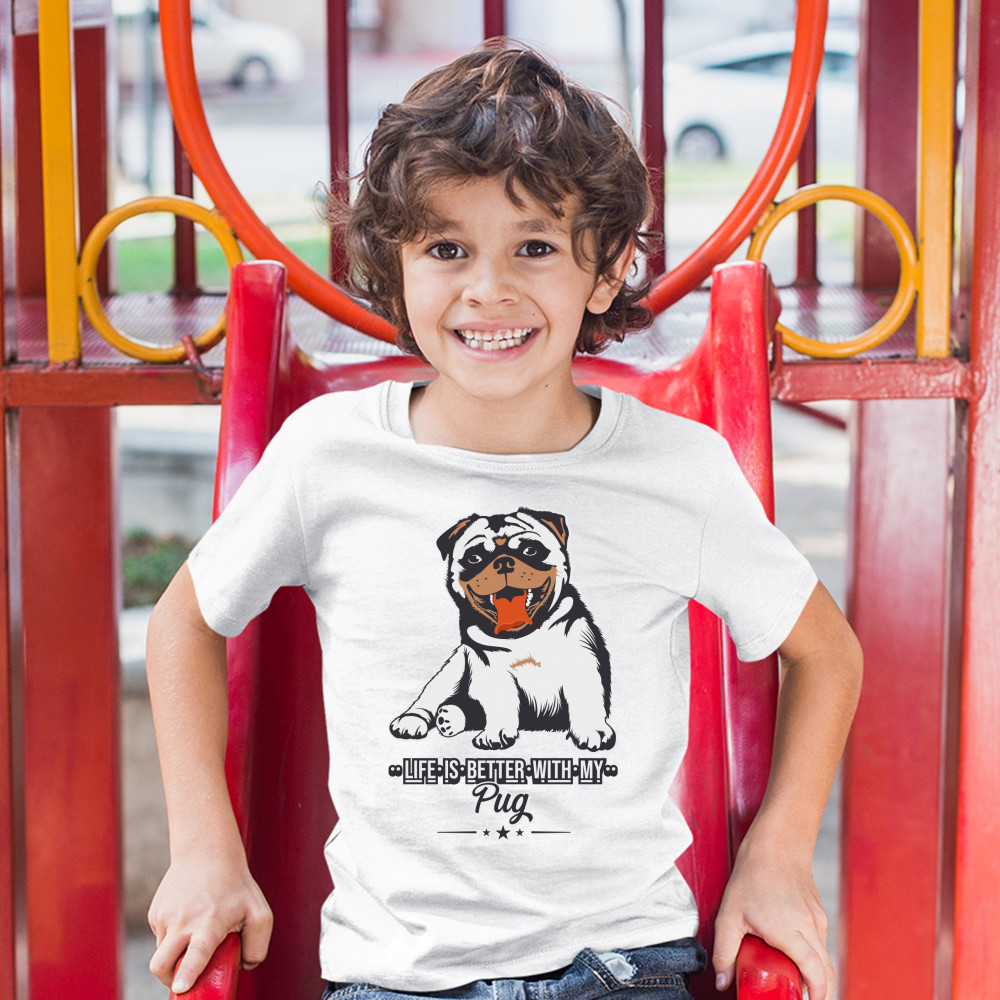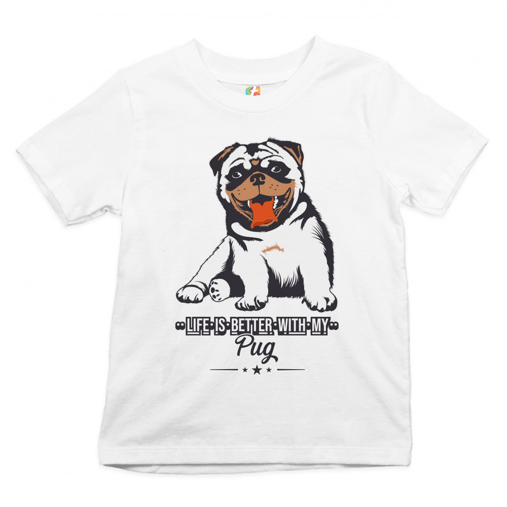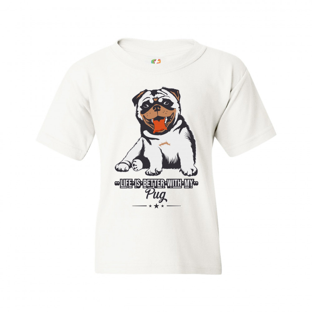 LIFE IS BETTER WITH MY PUG youth t-shirt cute pet adorable dog breed kids white