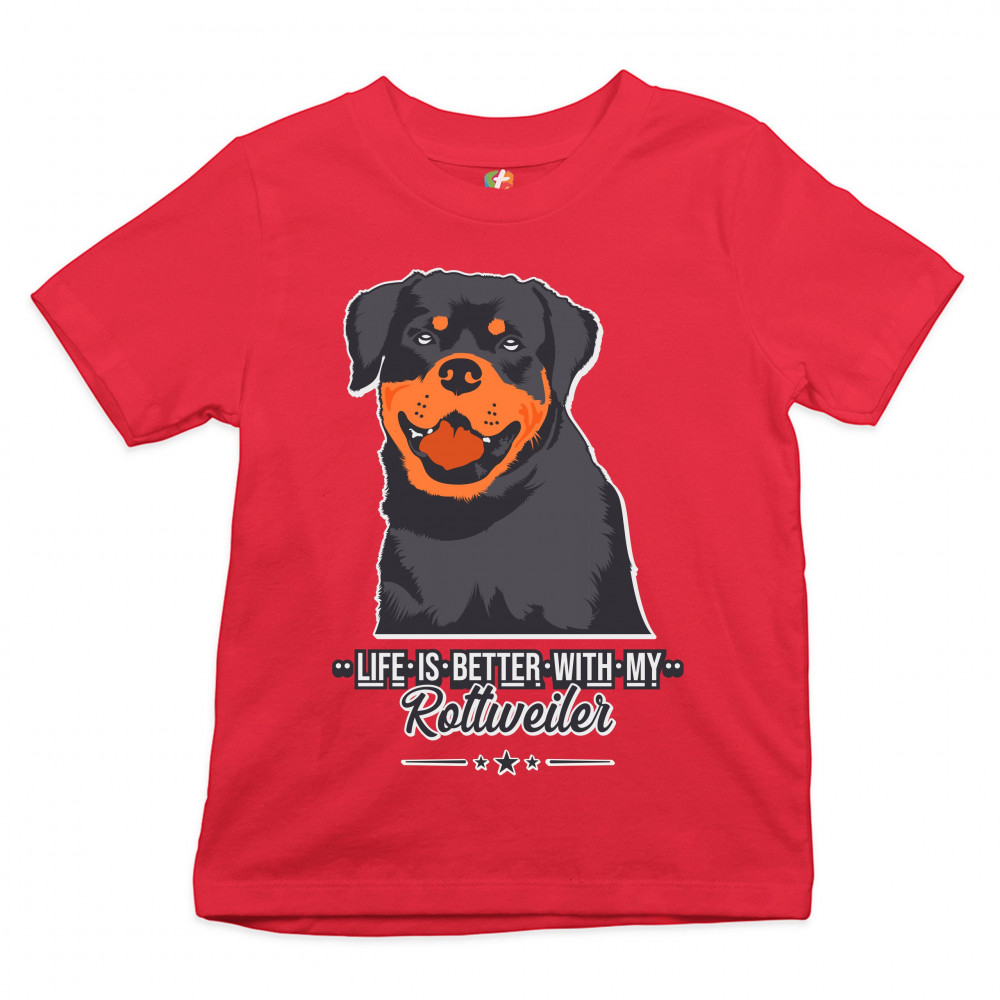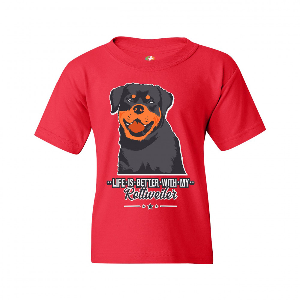 LIFE IS BETTER WITH MY ROTTWEILER youth t-shirt rottie pet dog lover kids red