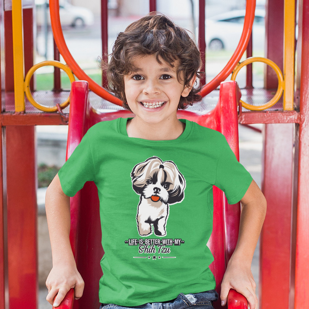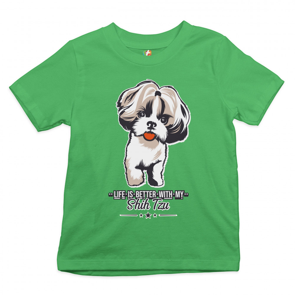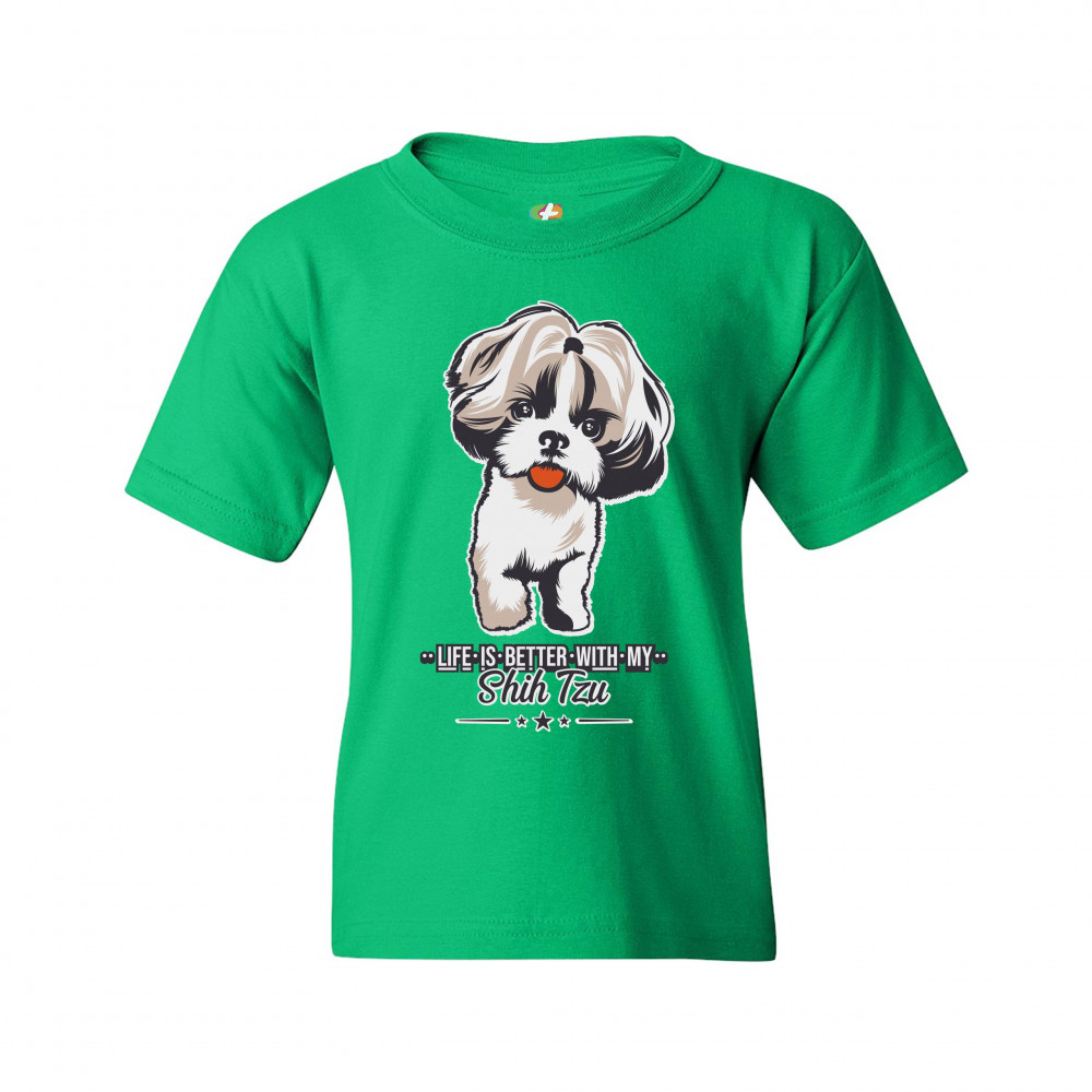LIFE IS BETTER WITH MY SHIH TZU youth t-shirt small dog lover toy dog kids green