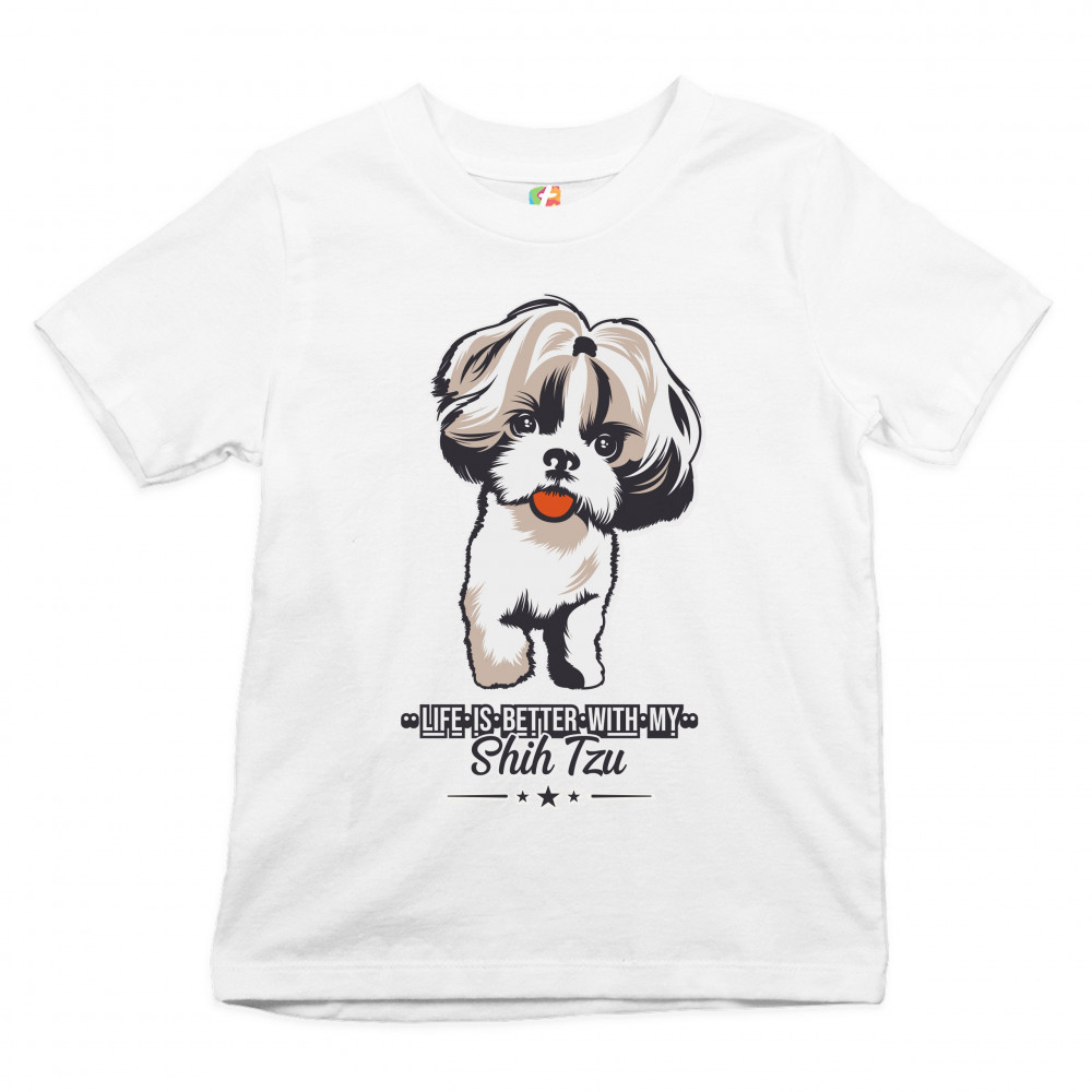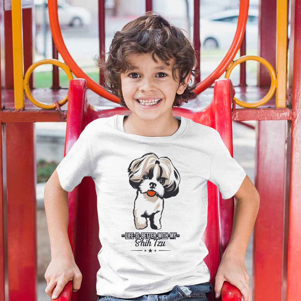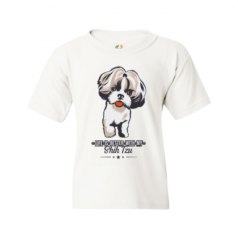 LIFE IS BETTER WITH MY SHIH TZU youth t-shirt small dog lover toy dog kids white