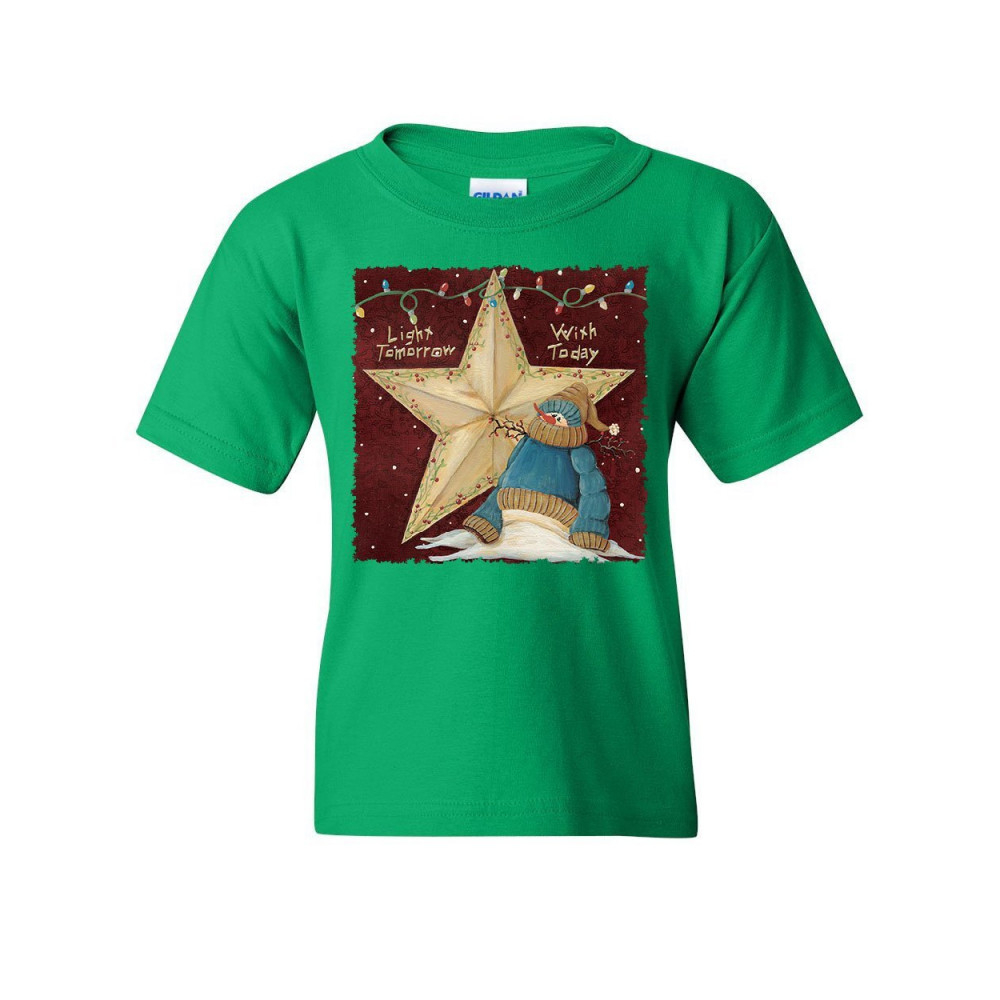 LIGHT TOMORROW WITH TODAY youth t-shirt cute christmas snowman holiday kids tee green