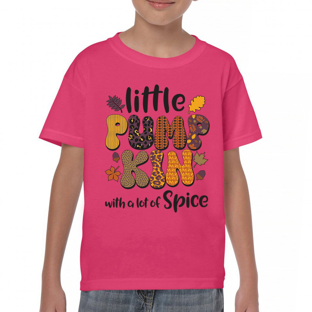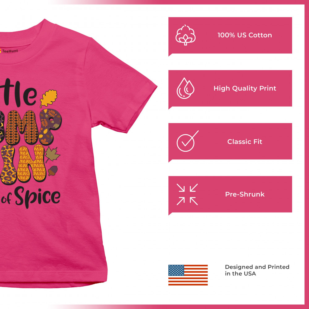 Celebrate the fall season with this playful 'Little Pumpkin with a Lot of Spice' design, perfect for festive gatherings and pumpkin patch visits.